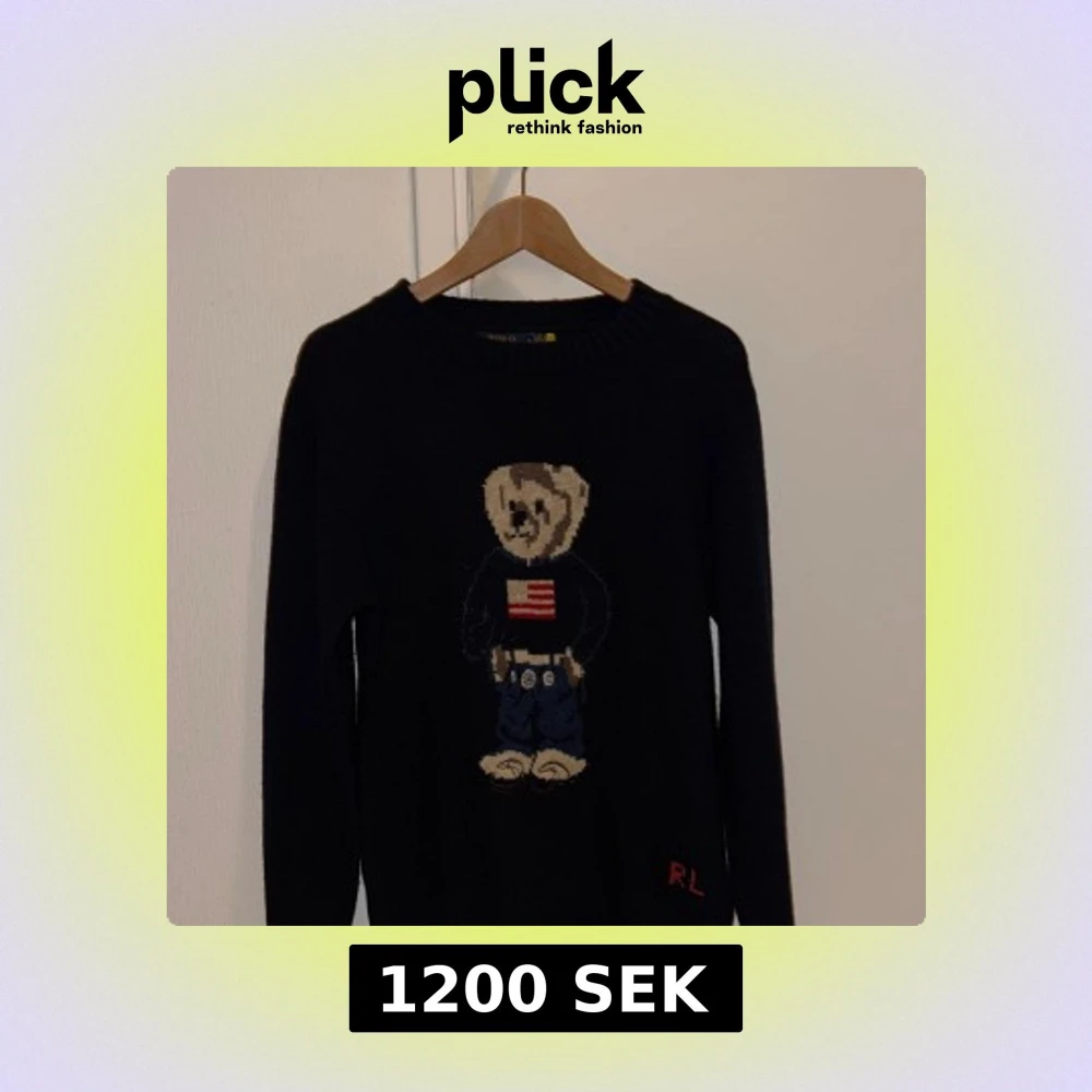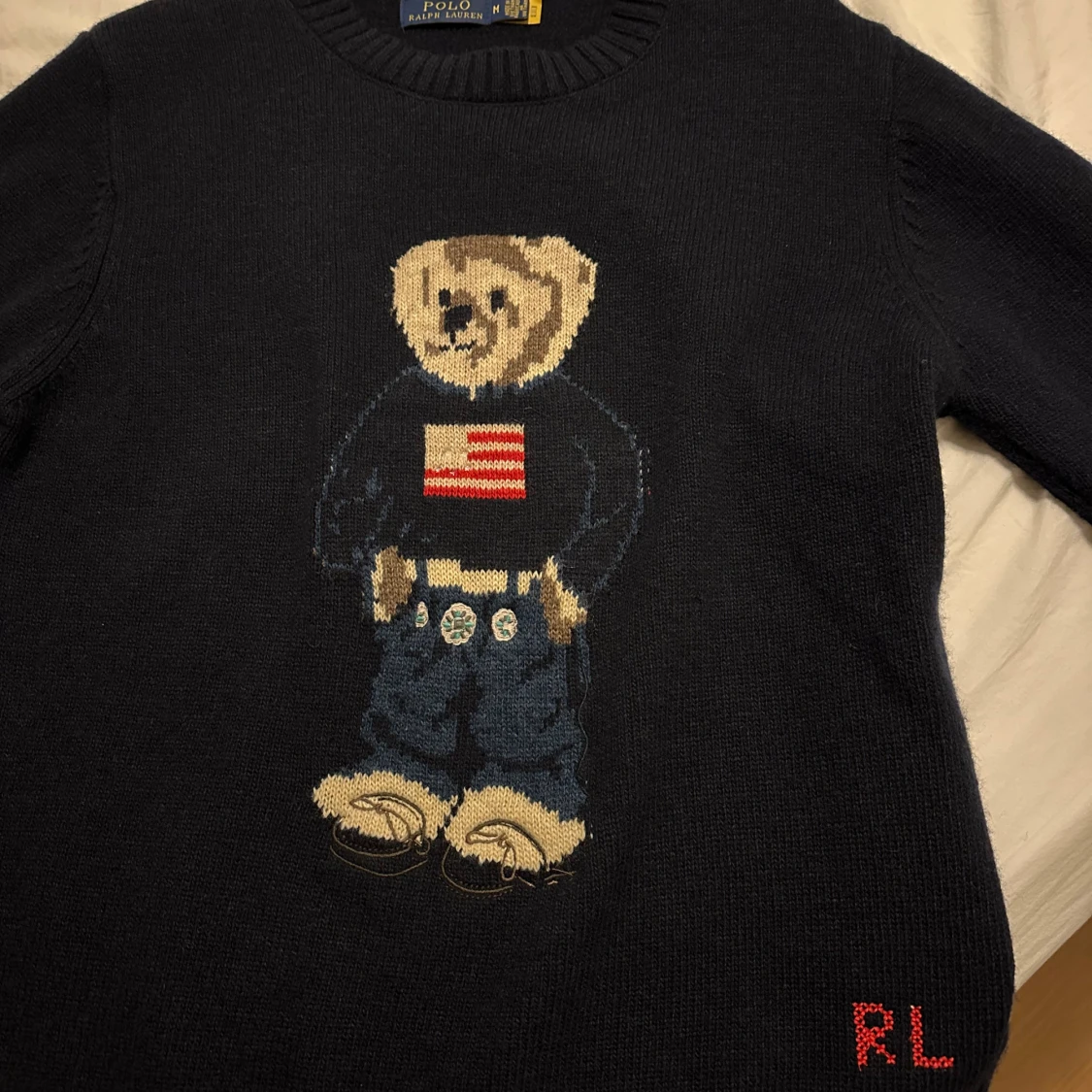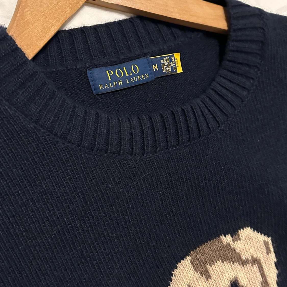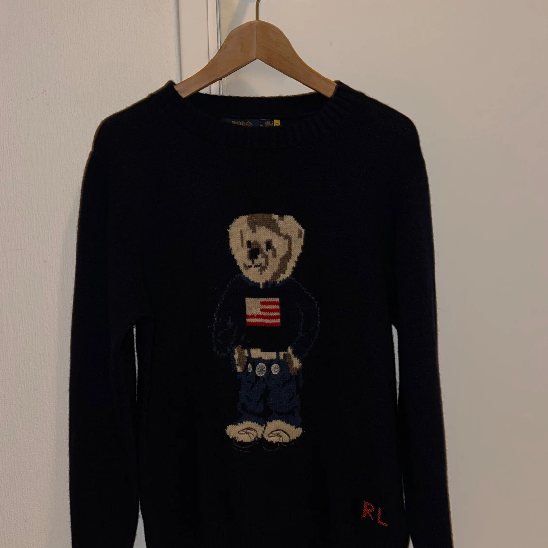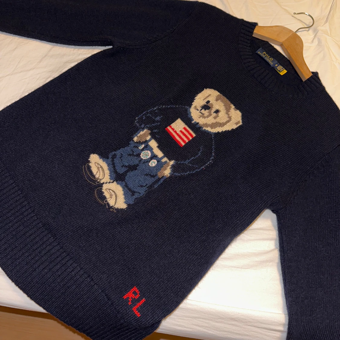 Mörkblå Stickad Ralph Lauren tröja med den ikoniska björn designen. Använd endast ett par gånger, nyskick! Passar S-M