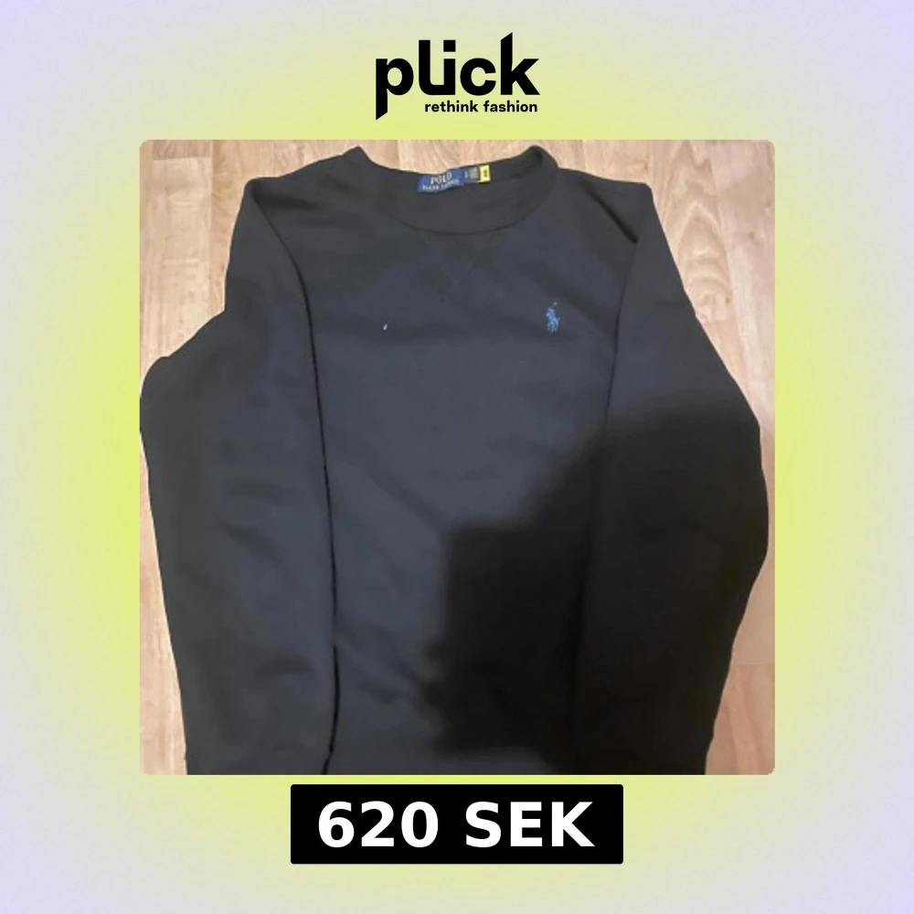 Säljer en stilren svart tröja från Polo Ralph Lauren. Tröjan har en rund halsringning och långa ärmar, perfekt för en avslappnad look. De ba skriva om du nåt