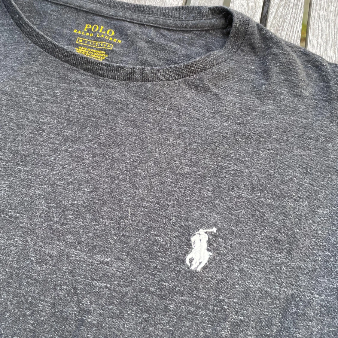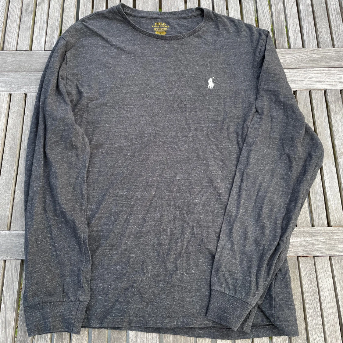 Mörkgrå långärmad tröja från Polo Ralph Lauren med klassisk rund hals och broderad vit logga på bröstet. Tillverkad i mjuk bomull som känns skön mot huden. Perfekt för dig som gillar stilren och enkel design.