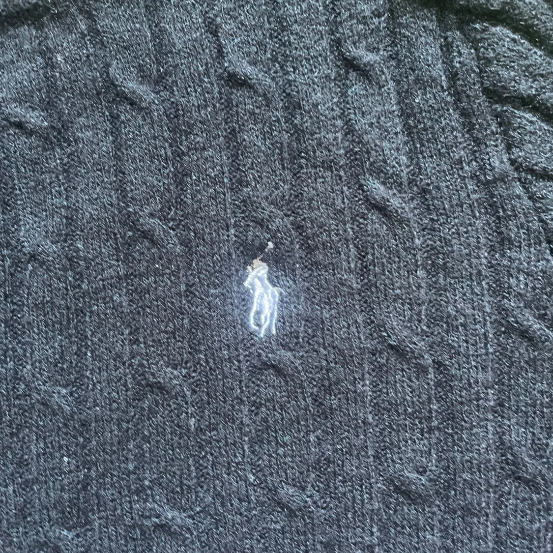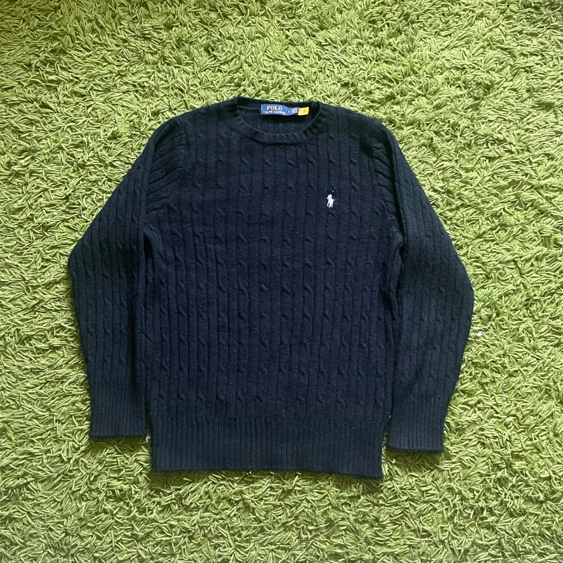 Kabelstickad mörkblå tröja från Polo Ralph Lauren med klassisk broderad logga på bröstet. Skick 10/10 då tröjan endast har använts ett fåtal gånger.