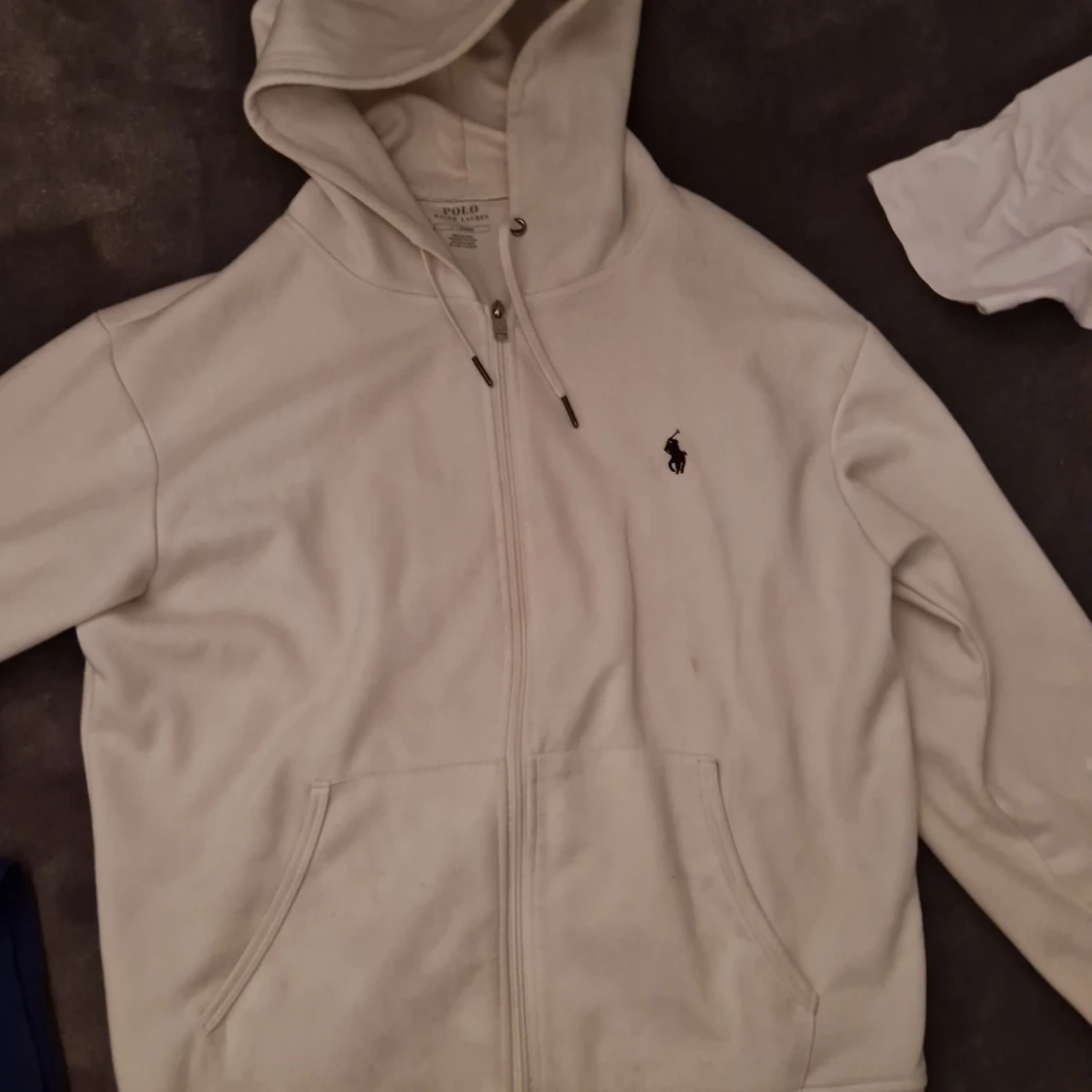 Två klassiska hoodies från Polo Ralph Lauren, en i vitt och en i svart. Båda har huva med snörning, dragkedja framtill och känguruficka. Ikoniska Polo-loggan broderad på bröstet. Perfekt basic till garderoben. 300 kr st