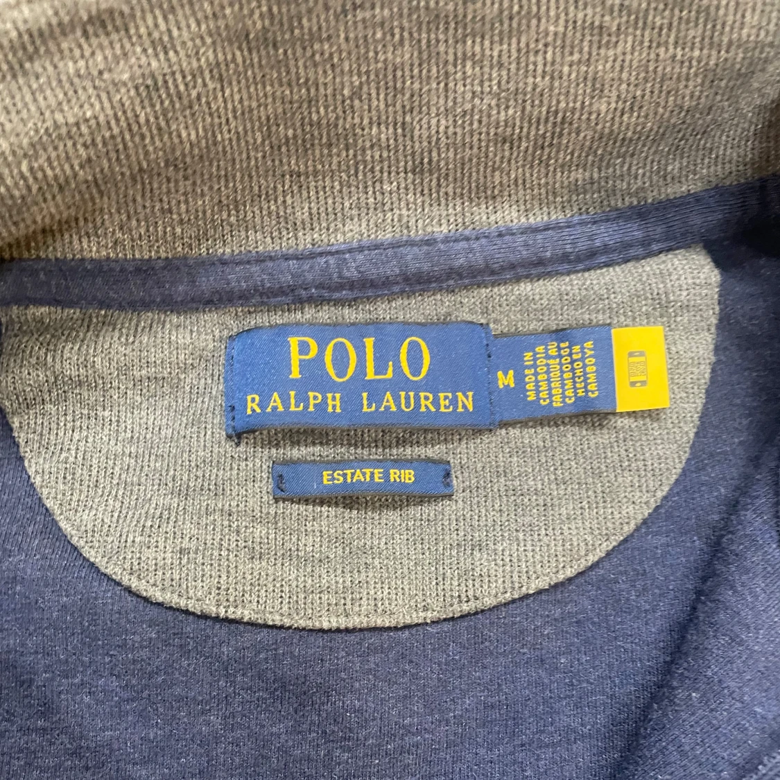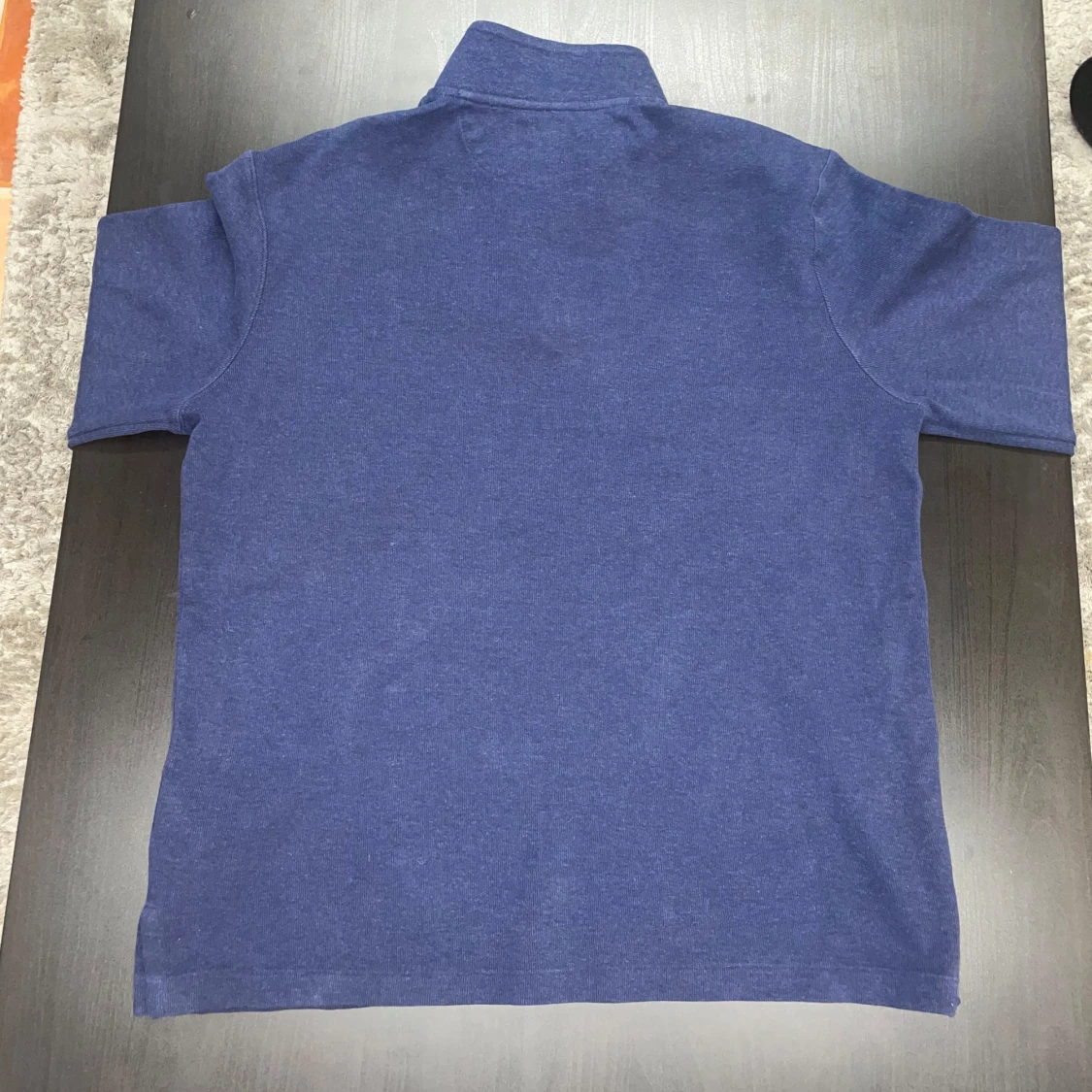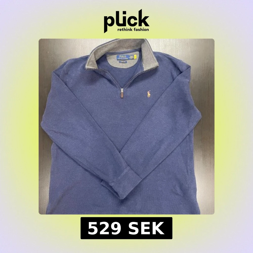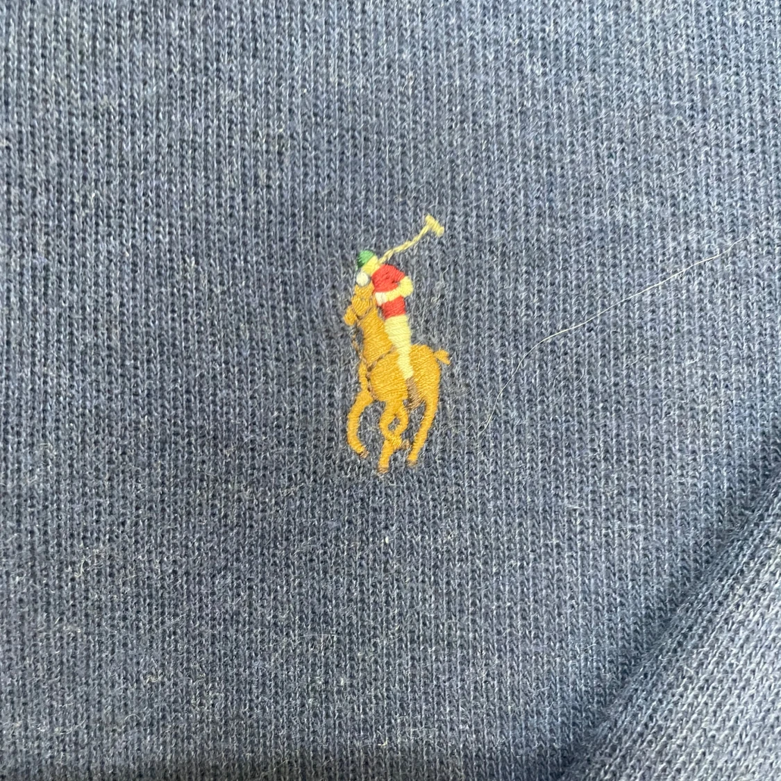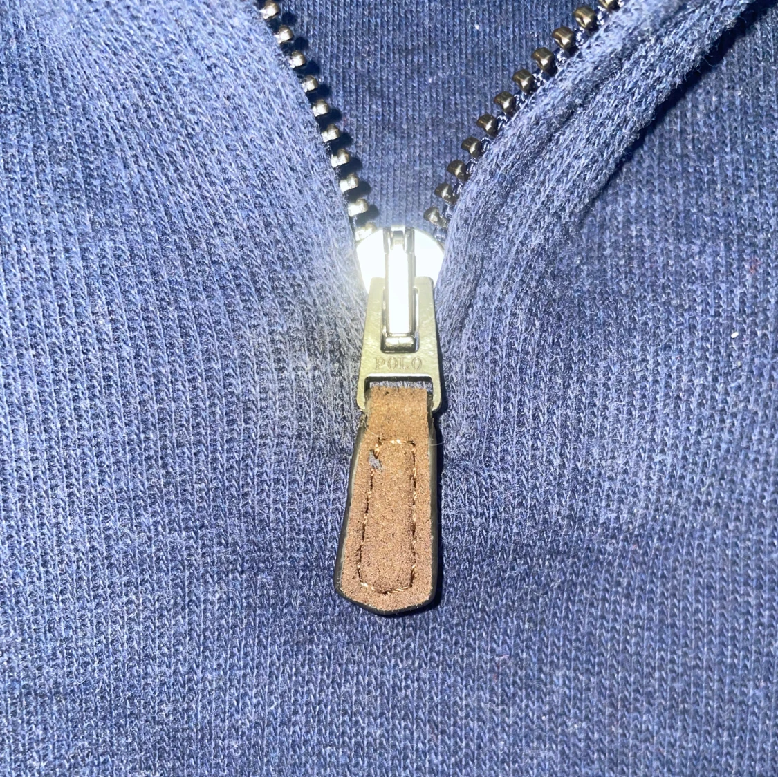 Säljer en stilren blå tröja från Polo Ralph Lauren med dragkedja och broderad logga på bröstet. Tröjan har en klassisk krage och är perfekt för en avslappnad look. Passar M och är slim fit på L