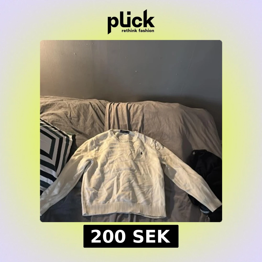 Vit stickad tröja från Polo Ralph Lauren med klassisk rund halsringning och broderad marinblå logga på bröstet. Tröjan har ribbade muddar vid ärmslut och nederkant, perfekt för lager-på-lager under höst och vinter.