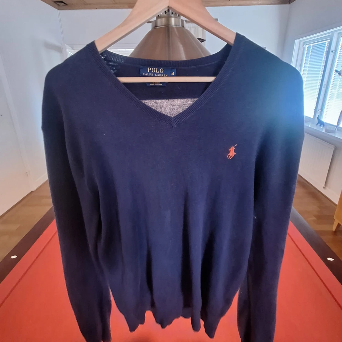 En härlig V neck från polo i bra skick, är en riktigt skön tröja och ser bra ut! Marinblå och redo för ny ägare. Kontakta gärna om funderingar!