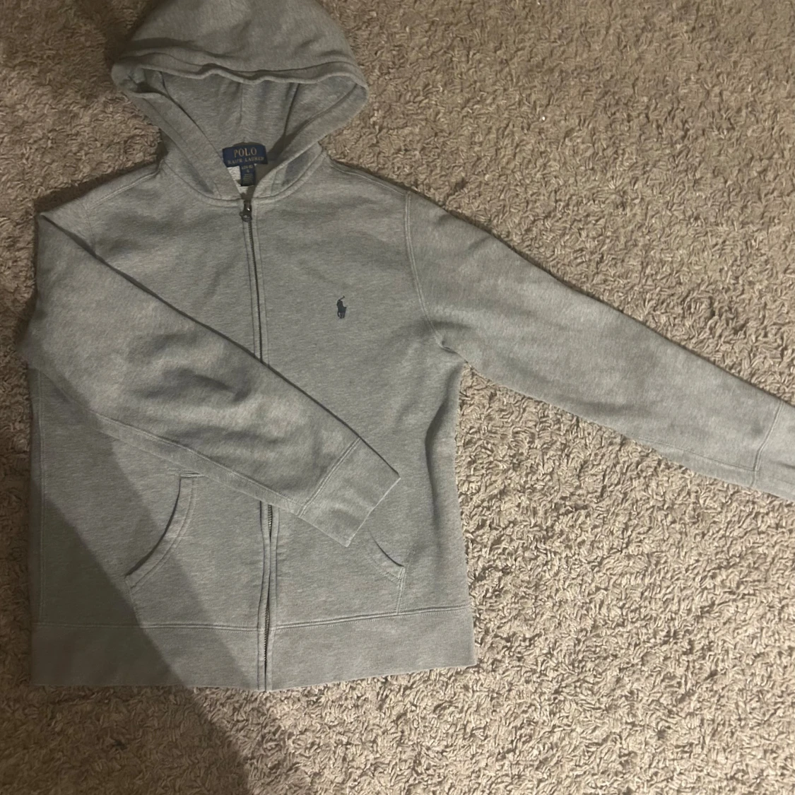 Snygg grå hoodie från Polo Ralph Lauren med dragkedja framtill och klassisk huva. Tröjan har två fickor och den ikoniska lilla broderade loggan på bröstet. Perfekt för chill dagar och enkel att matcha med allt. Tillverkad i mjuk bomullsmix för extra komfort.