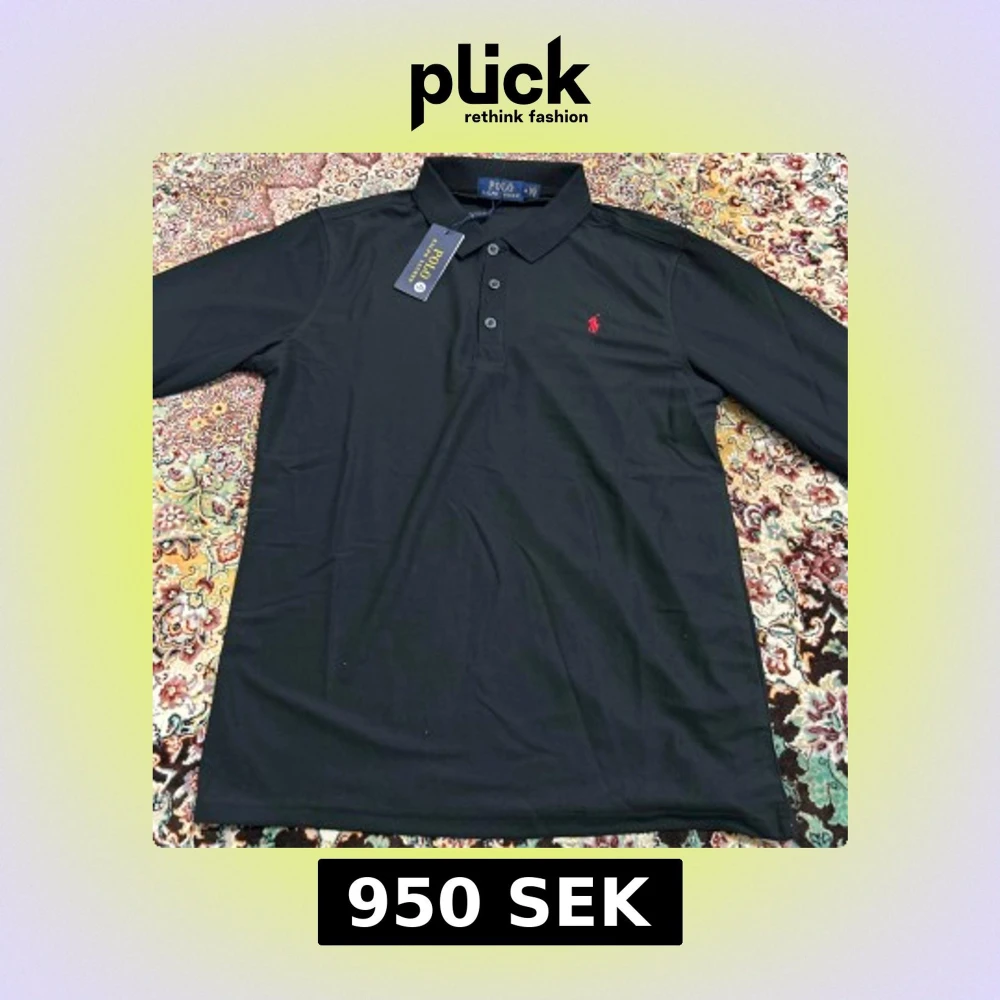 Svart långärmad pikétröja från Polo Ralph Lauren med klassisk krage och tre knappar framtill. Tröjan har det ikoniska röda Polo-logot broderat på bröstet och är gjord i mjuk bomull som känns skön mot huden. Perfekt för dig som gillar stilren och enkel design.