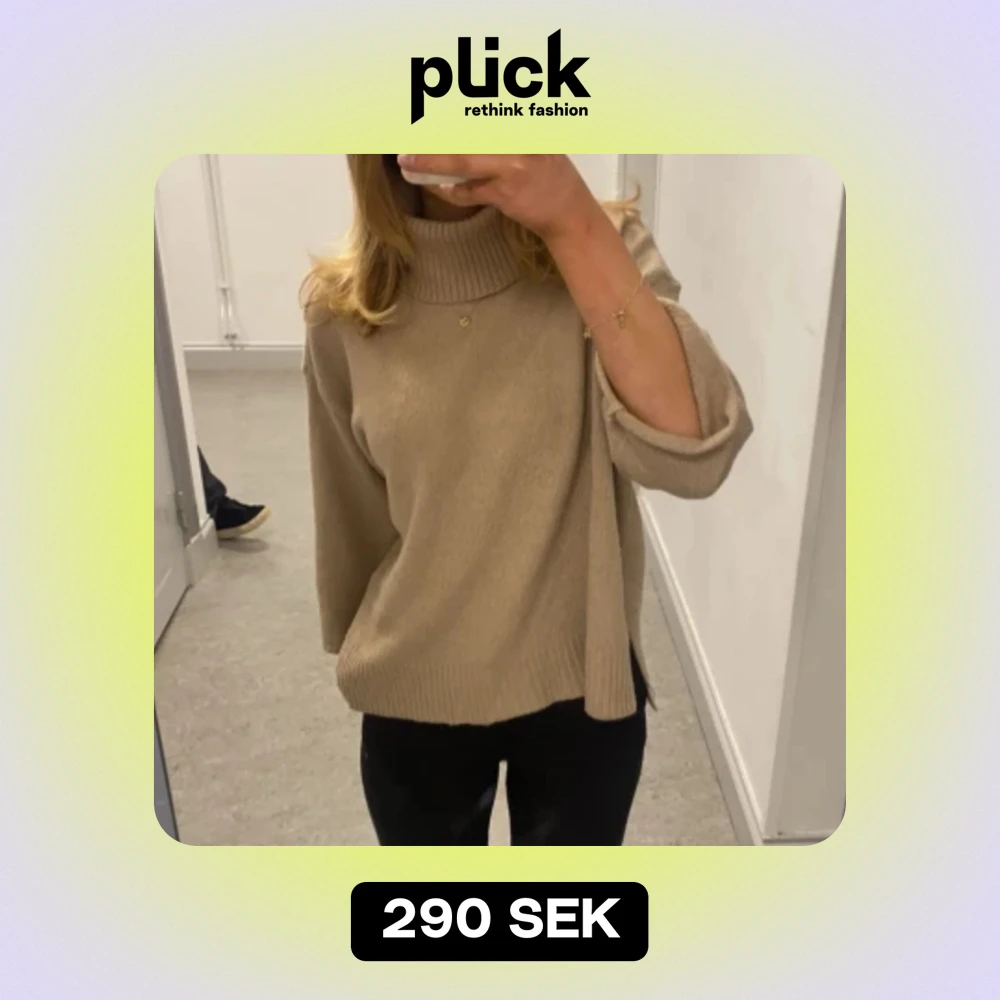 Stickad tröja med polokrage och trekvartsärmar. Köpt på zalando för 400kr om jag inte minns fel 💕beige brun, inte säker på storlek men sitter bra på mig som har S i vanliga fall