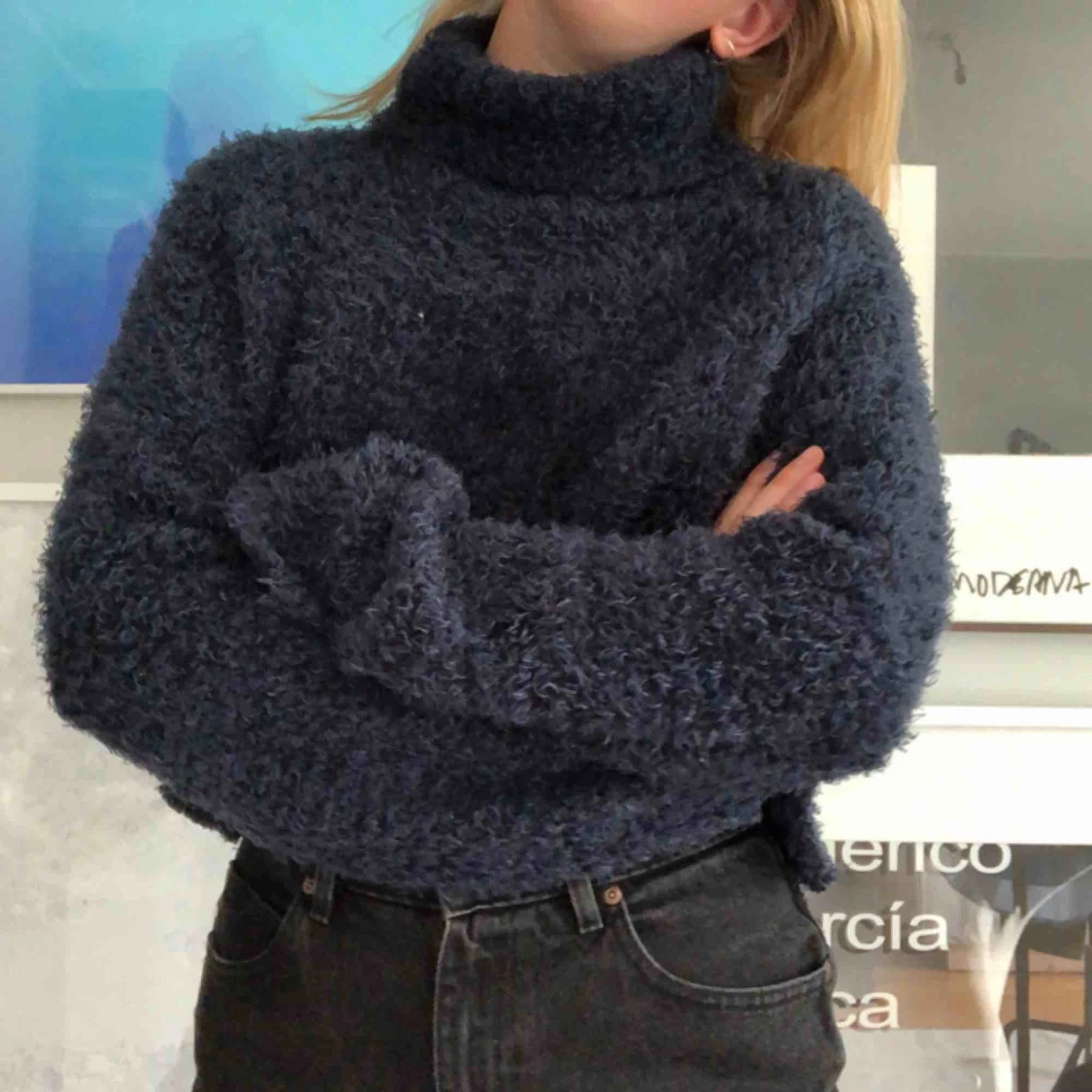 väärldens mysigaste tröja:)) inte så varm som den ser ut så funkar även på sommaren!! den var lång men är avklippt så den har ingen fåll menmen. 🍋FRAKT INGÅR🍋