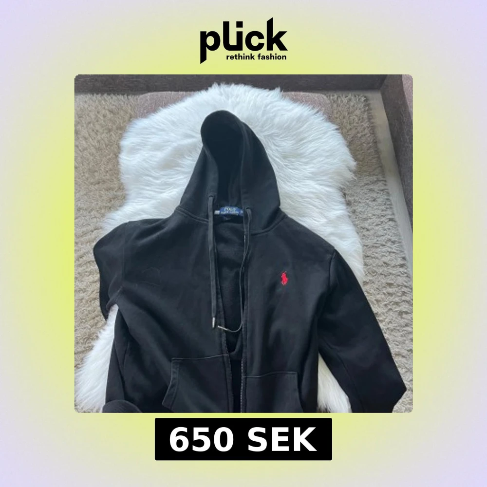 Ny svart hoodie från Polo Ralph Lauren i storlek M herr men känns som en S. KAN GÅ NER I PRIS. Den har klassisk röd logobrodering på bröstet. Tröjan har huva med snörning, dragkedja framtill och två fickor. Materialet är mjuk bomull och passformen är normal.