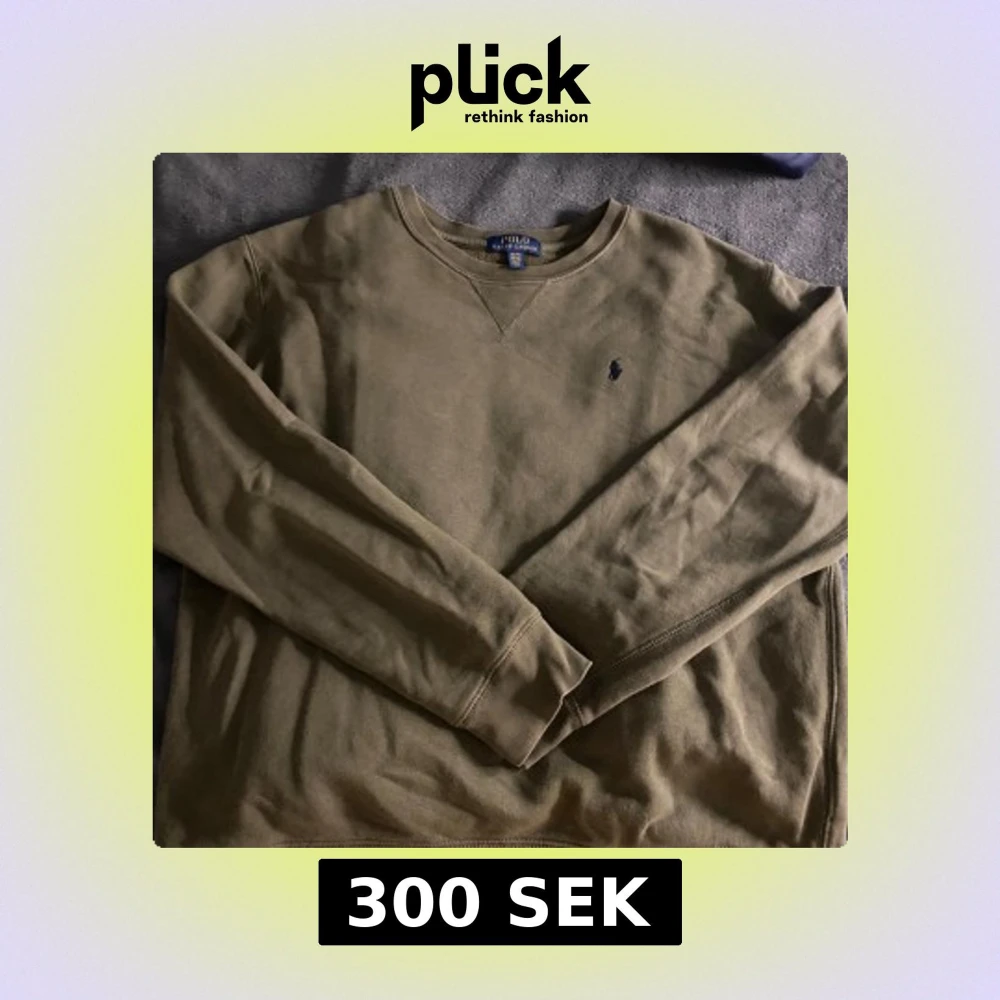 Säljer en olivgrön tröja från Polo Ralph Lauren med rund halsringning och broderad logotyp på bröstet. Tröjan har långa ärmar och är perfekt för en avslappnad stil. Passar bra till både jeans och chinos.