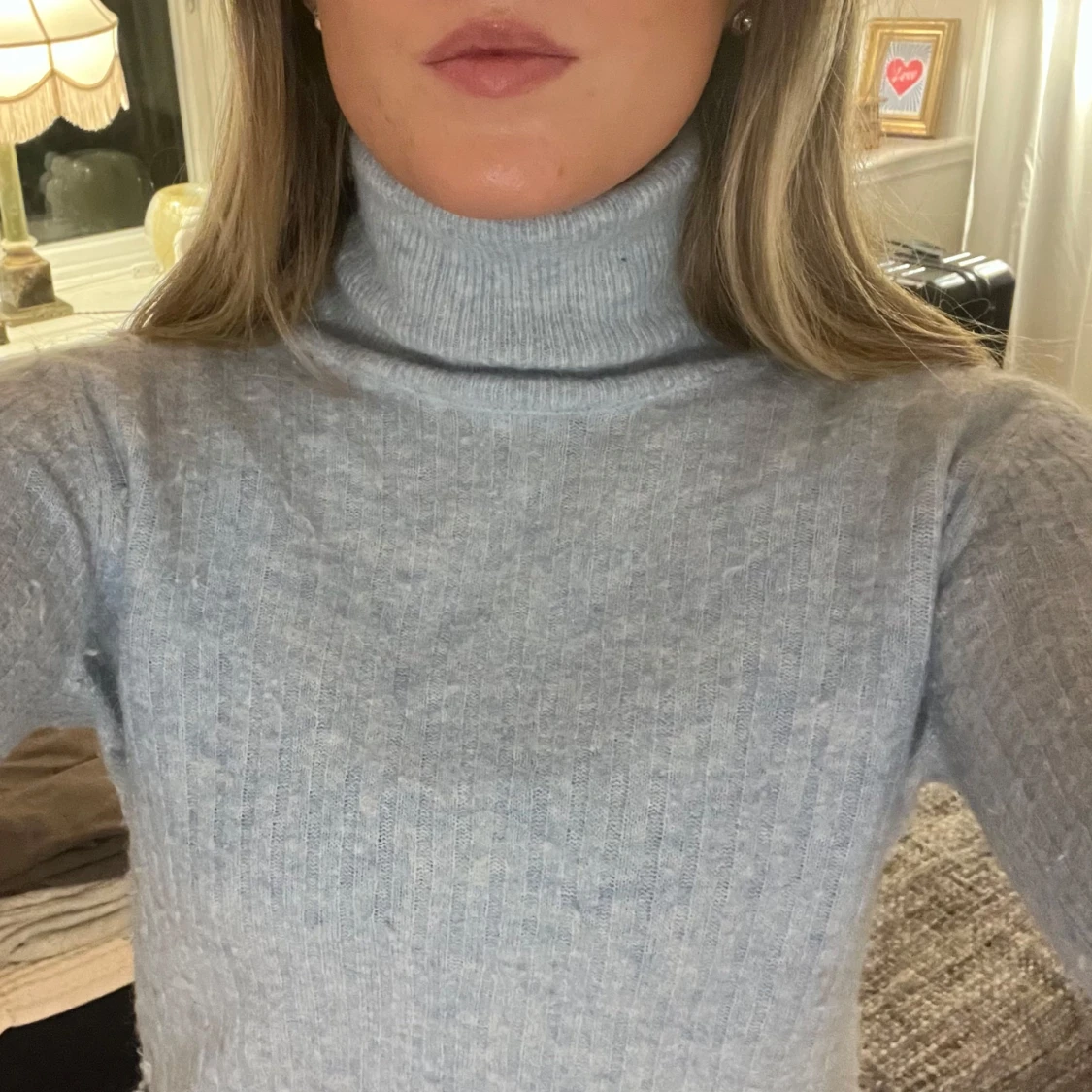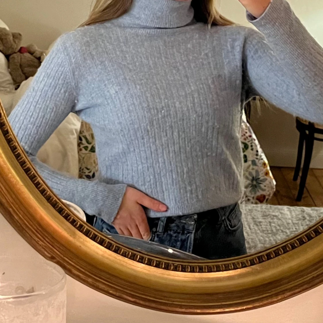 Ljusblå polotröja perfekt till våren! Varm och mysig i materialet. En ullblandning.