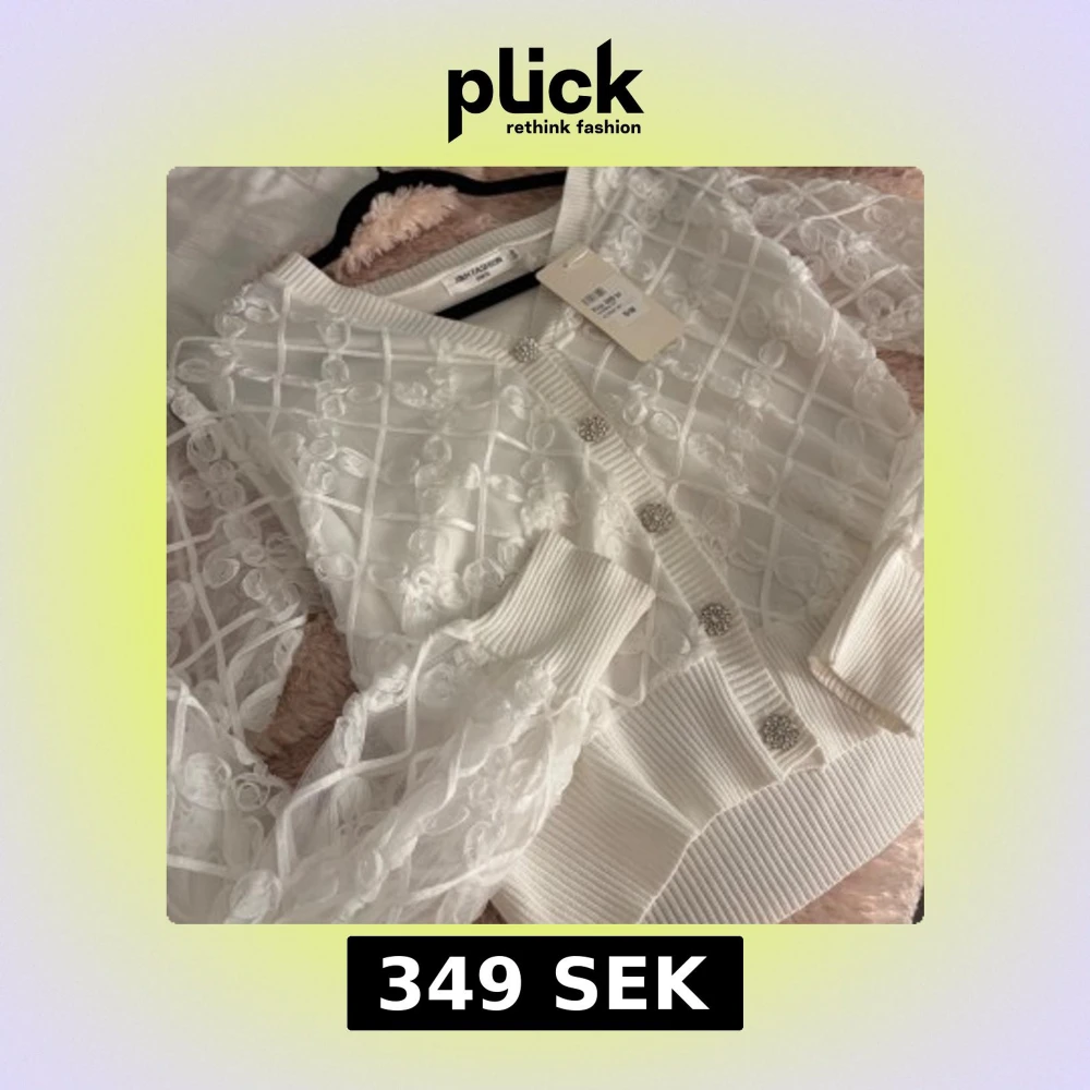 Superfin vit kofta med transparent spets och blommönster. Koftan har långa ärmar, glittriga pärlknappar och ribbade muddar. Den är helt oanvänd och kvitto kan möjligtvis gå att hitta! Nypris 699kr. Storlek S/M men passar mig som har S.