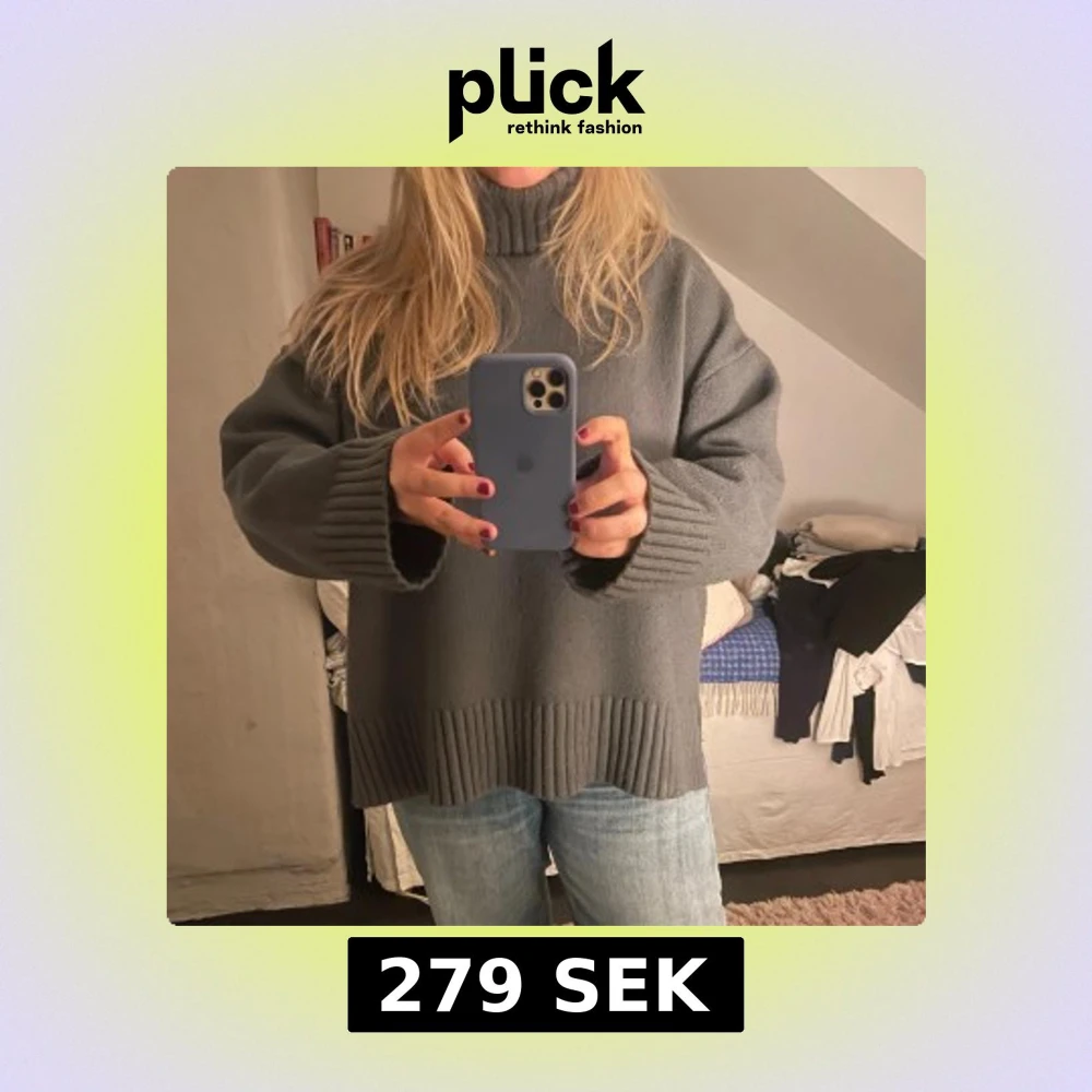 Mycket populär grå stickad polotröja från HM i storlek M! På sista bilden syns ett litet hål som är igensytt men det är inget som läggs märke till. Skriv om du har fler frågor!!💗💗