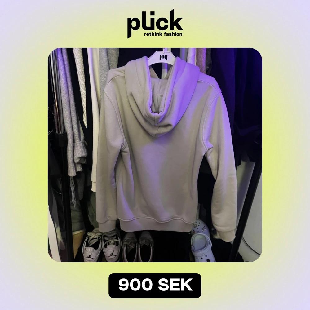 Säljer en snygg beige hoodie från Prada i storlek L. Den har en stor ficka fram och justerbar huva med dragsko. Perfekt för en avslappnad stil och passar till alla säsonger. Märkesloggan är broderad på framsidan för en lyxig touch.