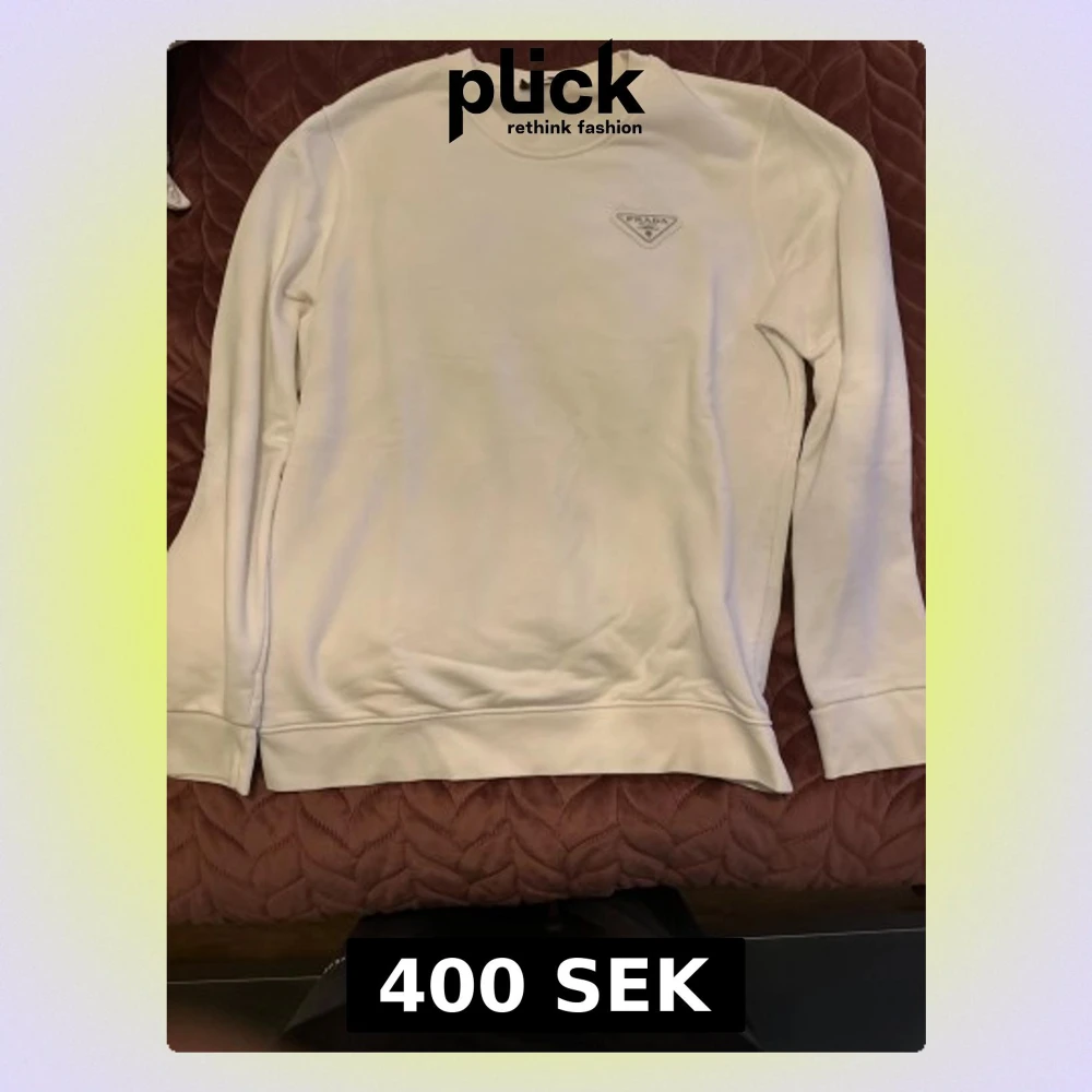 Snygg vit långärmad tröja från Prada med rund hals och diskret logga på bröstet. Tröjan har en clean och stilren look, perfekt för dig som gillar minimalistisk design. Tillverkad i mjukt material som känns skönt mot huden.