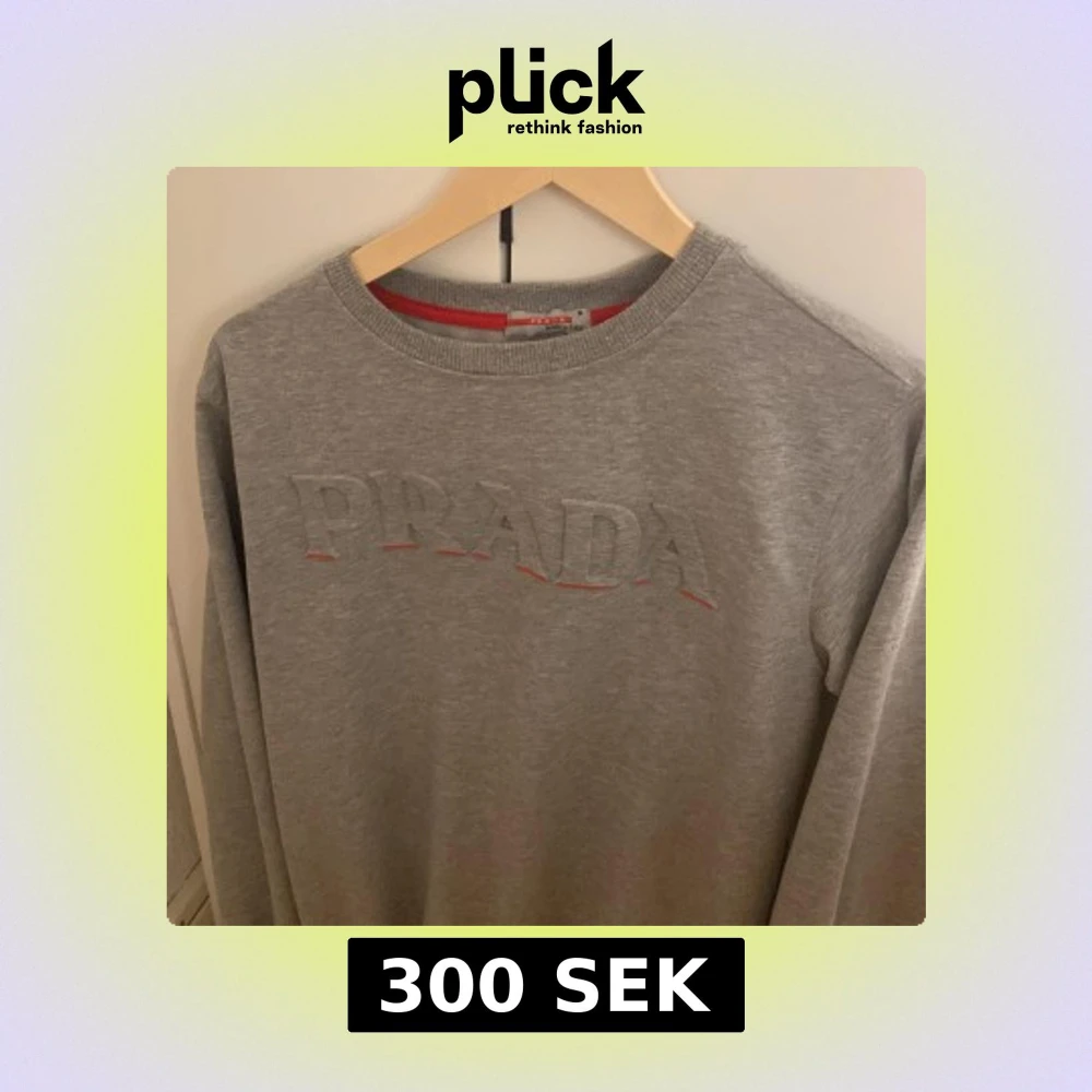 Snygg grå sweatshirt från Prada. Storlek M men skulle säga att den passar S