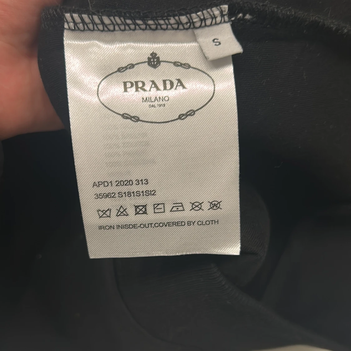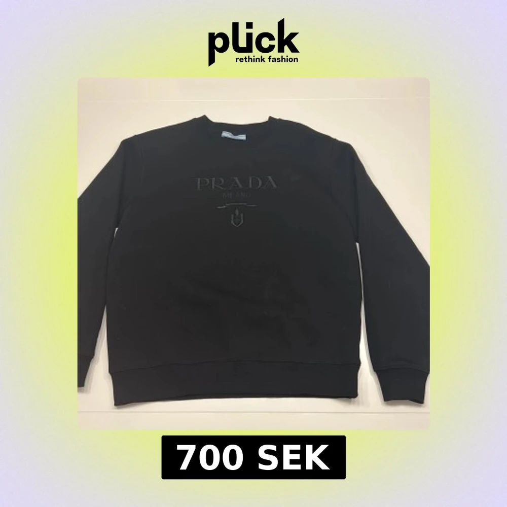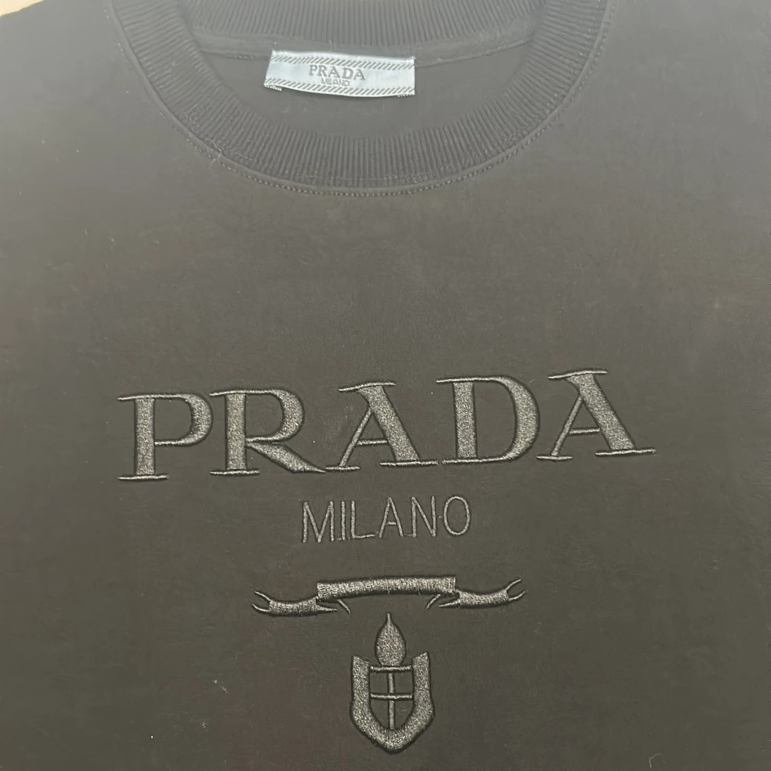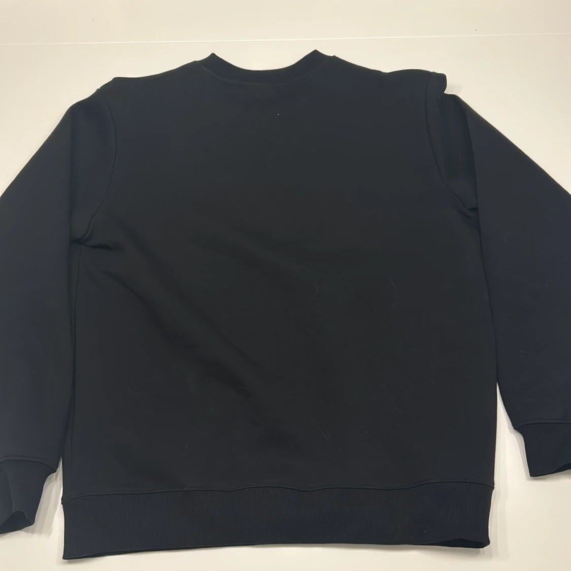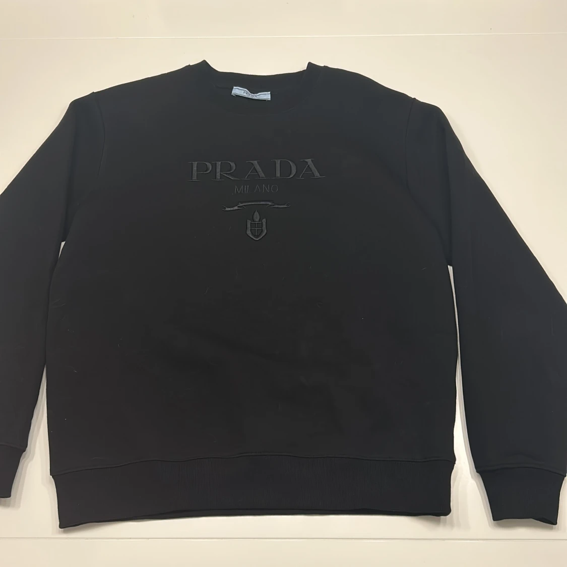 Svart sweatshirt från Prada Milano med broderad logga framtill. Klassisk rund halsringning, ribbade muddar och mjukt material i bomullsblandning. Perfekt för dig som gillar stilrena designer och exklusiva märken. Använd kanske 1-3 gånger