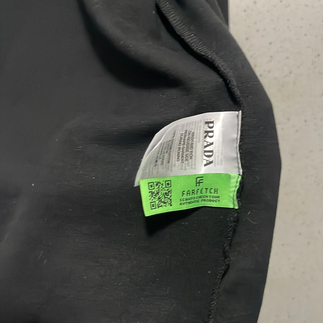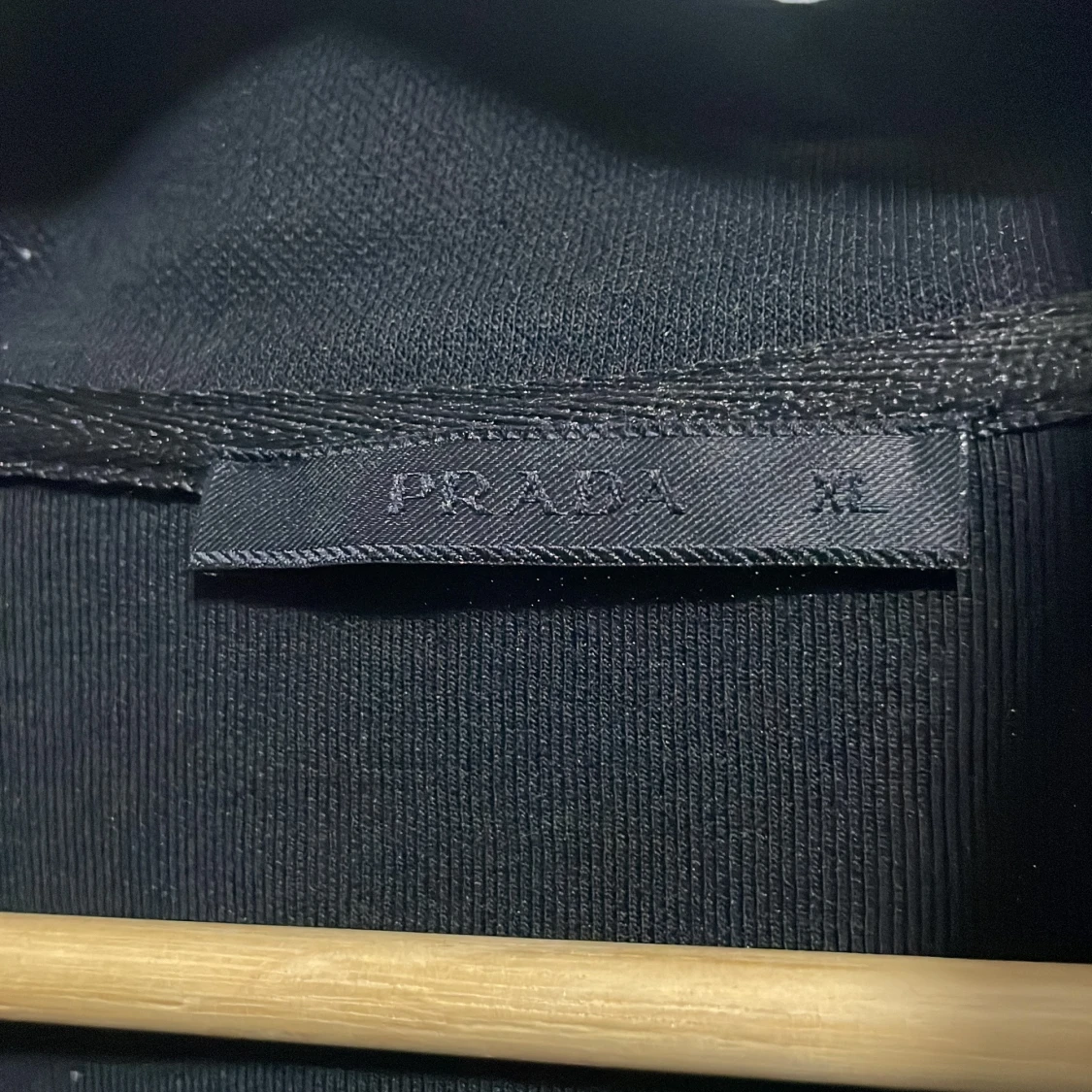 Svart hoodie från Prada i storlek XL med hel dragkedja och klassisk ståkrage. Tröjan har Pradas ikoniska metallogo på bröstet och är tillverkad i mjuk bomullsblandning. Perfekt för dig som gillar stilren och exklusiv streetwear, använd bara två gånger helt ny koster 40,000, den är i topp skick