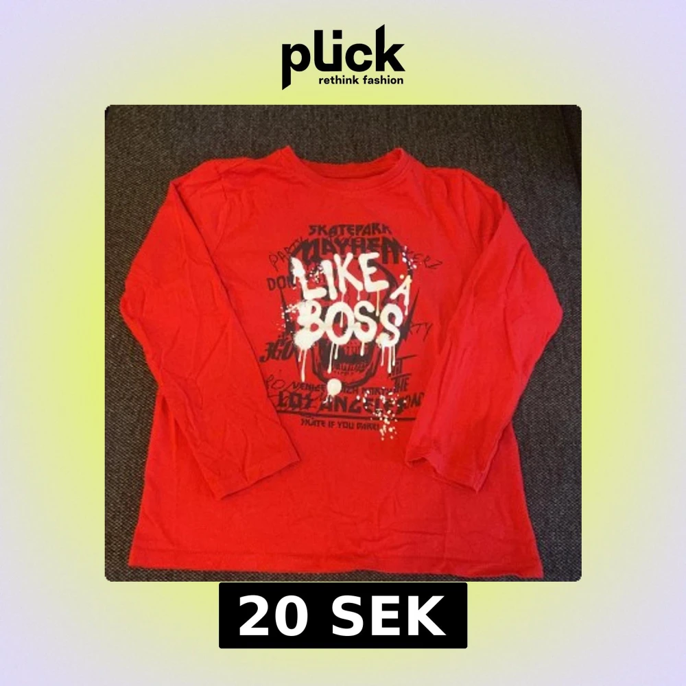 Cool röd långärmad tröja med trycket 'LIKE A BOSS' i vitt och svart graffiti-stil på bröstet. Perfekt för dig som gillar streetwear och vill sticka ut. Skön passform och mjukt material, passar till chill dagar och häng med kompisar.