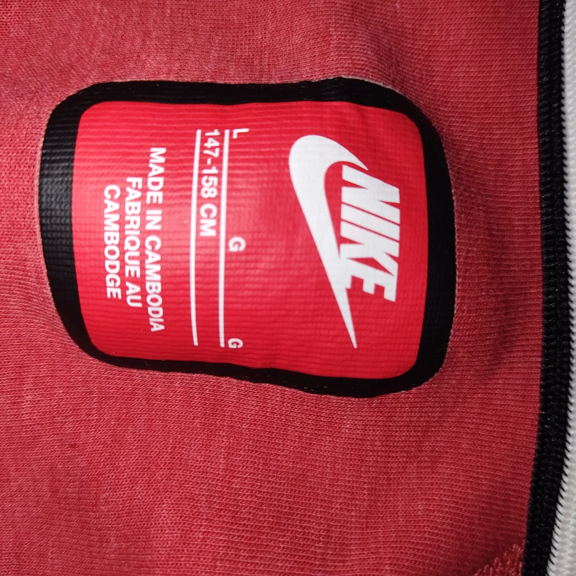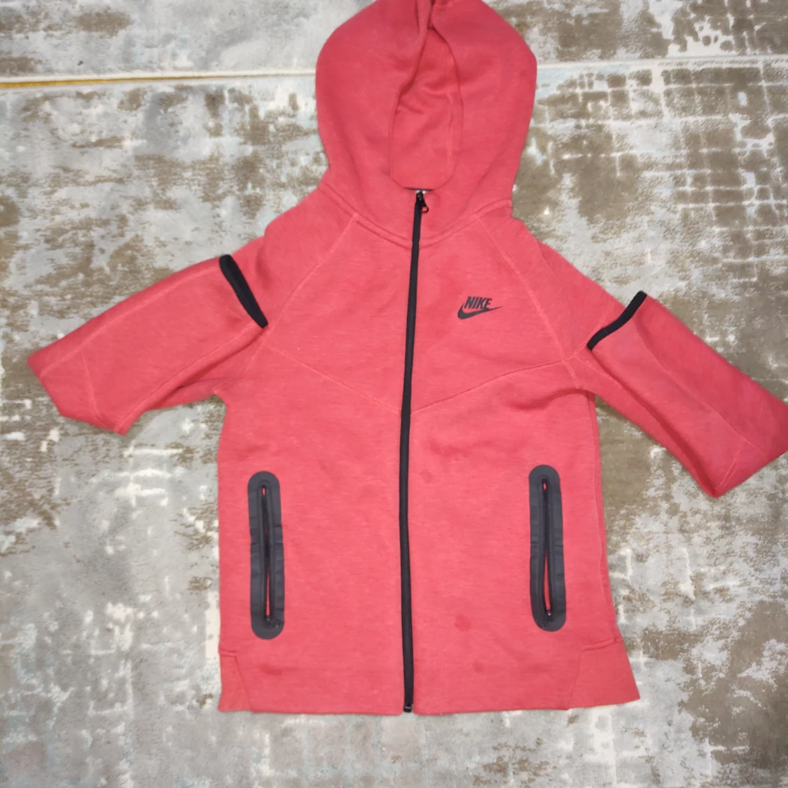 Nike hoodie i rött med svarta detaljer och hel dragkedja framtill. Tröjan har huva, två svarta fickor med dragkedja och Nike-logga på bröstet. Perfekt för en sportig look och chill dagar.