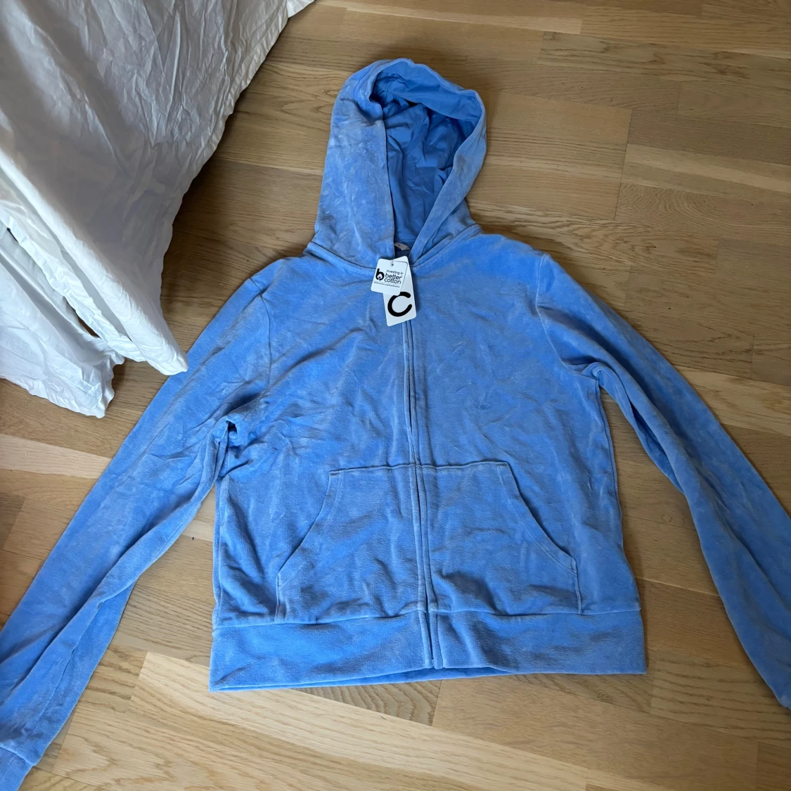 Mjuk och chill blå hoodie i velour från Cubus. Tröjan har dragkedja framtill, huva och känguruficka. Perfekt för dig som gillar en avslappnad stil och vill ha något riktigt skönt att dra på dig. Snyggt basic-plagg med lång ärm och relaxed vibe. Storlek M men kan passa S och kanske Xs för en lite mer baggy fit. Aldrig använd och prislapp kvar. Pris går att diskutera 💗