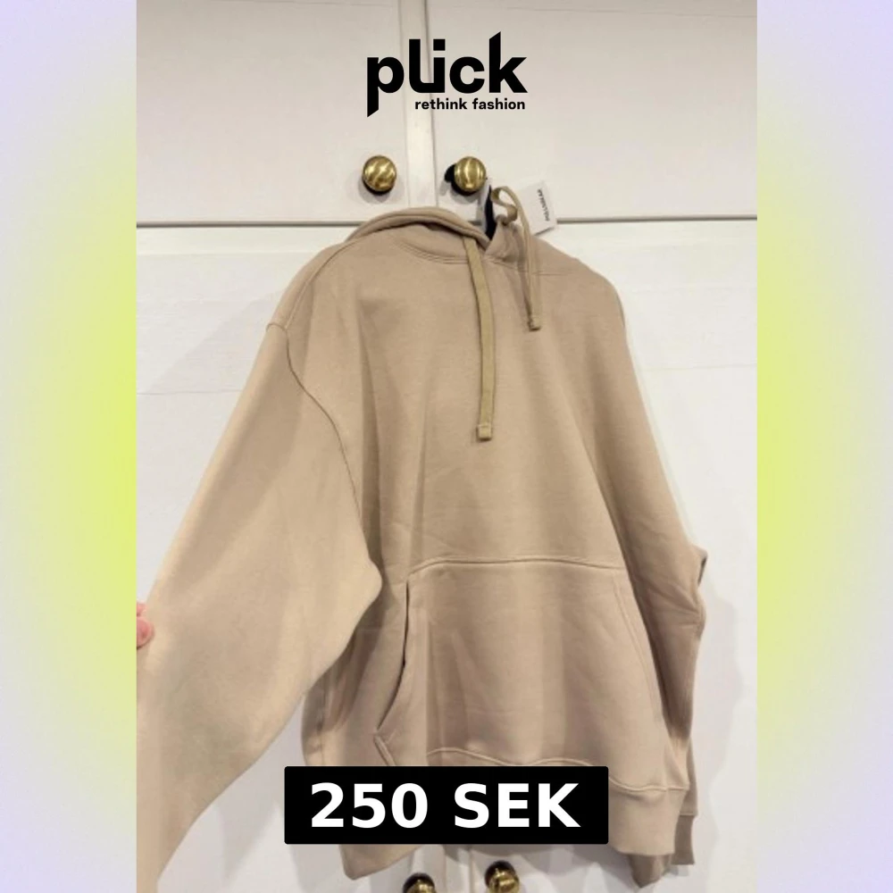 Snygg beige hoodie från Pull&Bear i storlek M. Tröjan har huva med snörning, stor magficka och ribbade muddar vid ärmslut och nederkant. Perfekt för chill dagar och enkel att matcha med jeans eller joggers.