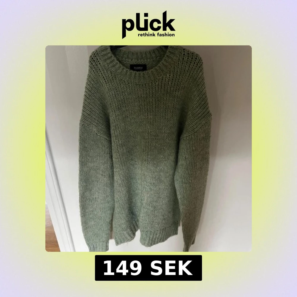 Mysig grön stickad tröja från Pull&Bear i storlek M. Tröjan har en loose passform, grovstickad struktur och rund hals. Perfekt för kyliga dagar och enkel att matcha med jeans eller kjol. Färgen är en mjuk grön ton som ger en chill vibe.