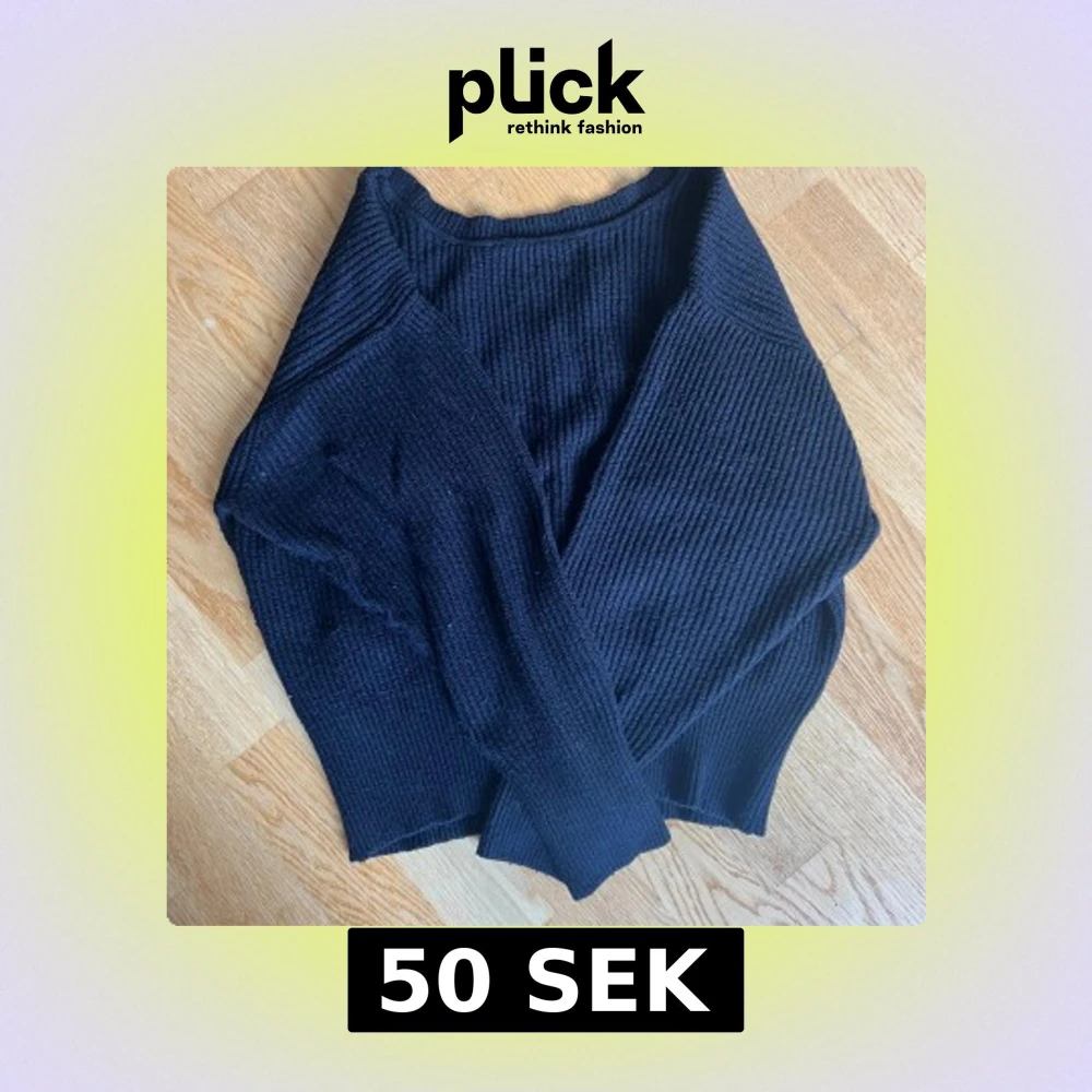 Svart stickad tröja från Pull&Bear i storlek S. Tröjan är ribbad, långärmad med rund hals, samt lite v-ringad bak.