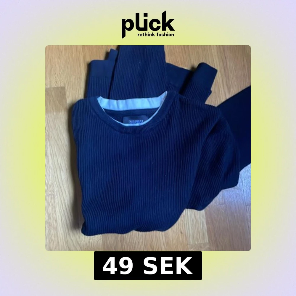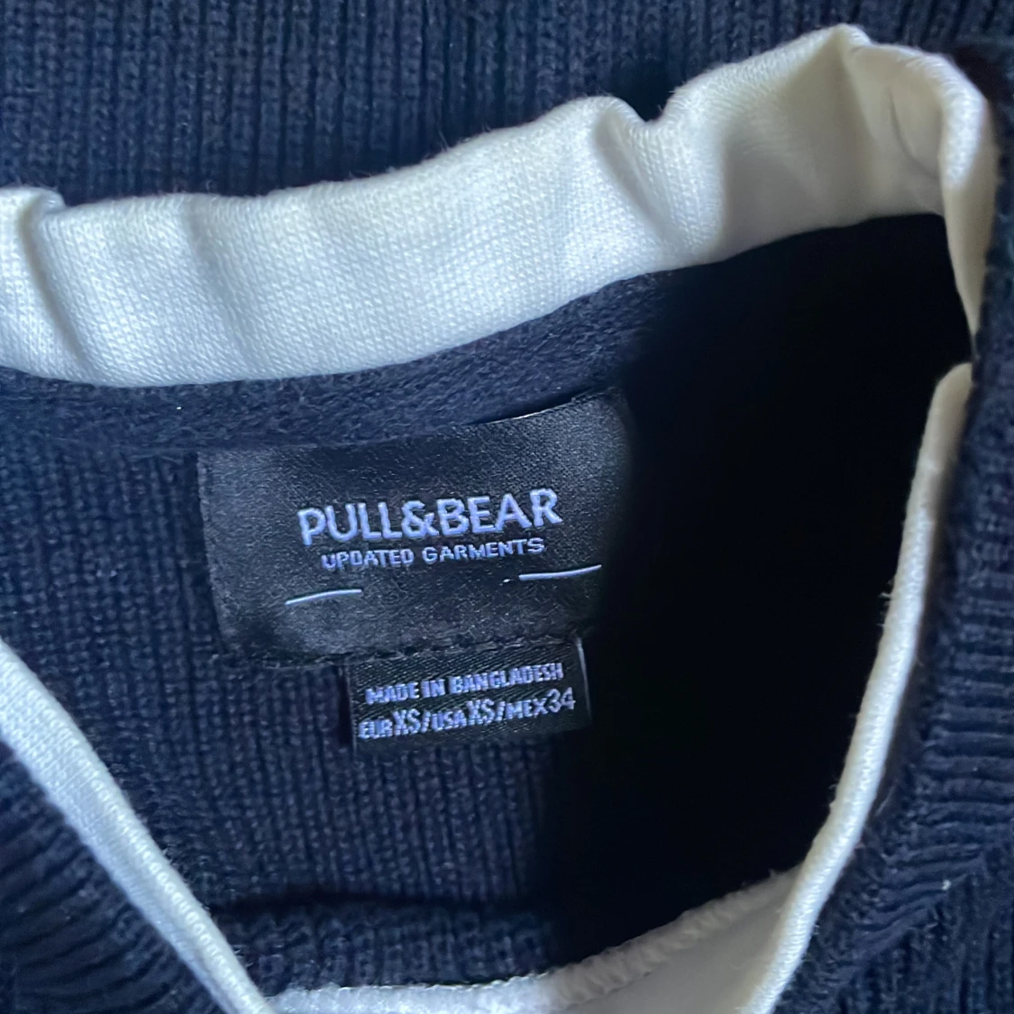 Snygg mörkblå ribbad tröja från Pull&Bear i storlek XS. Tröjan har rund hals och långa ärmar, perfekt för dig som gillar enkel och stilren design. Materialet är mjukt och bekvämt, passar till jeans för en chill look.