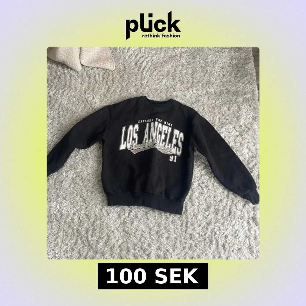 Säljer en svart sweatshirt från Pull&Bear med texten 'Los Angeles' i vitt och grått på framsidan. Tröjan har långa ärmar och en rund halsringning. Perfekt för en avslappnad stil. 🖤 superskön, endast använd ett fåtal gånger. Mitt pris 100 kr nypris 500kr