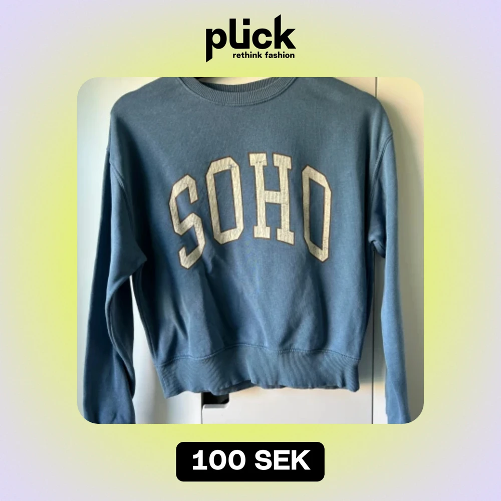En fin blå tröja från pull & bear. SOHO trycket på magen är menat till att se slitet ut. Inga defekter och skriv om ni vill ha bild på💕