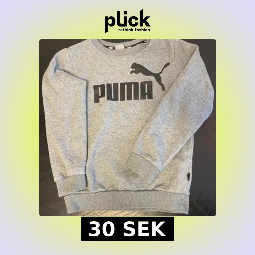 Säljer en stilren grå sweatshirt från Puma med deras ikoniska logga i svart på bröstet. Tröjan har långa ärmar och ribbade muddar vid ärmslut och nederkant. Perfekt för en avslappnad look.