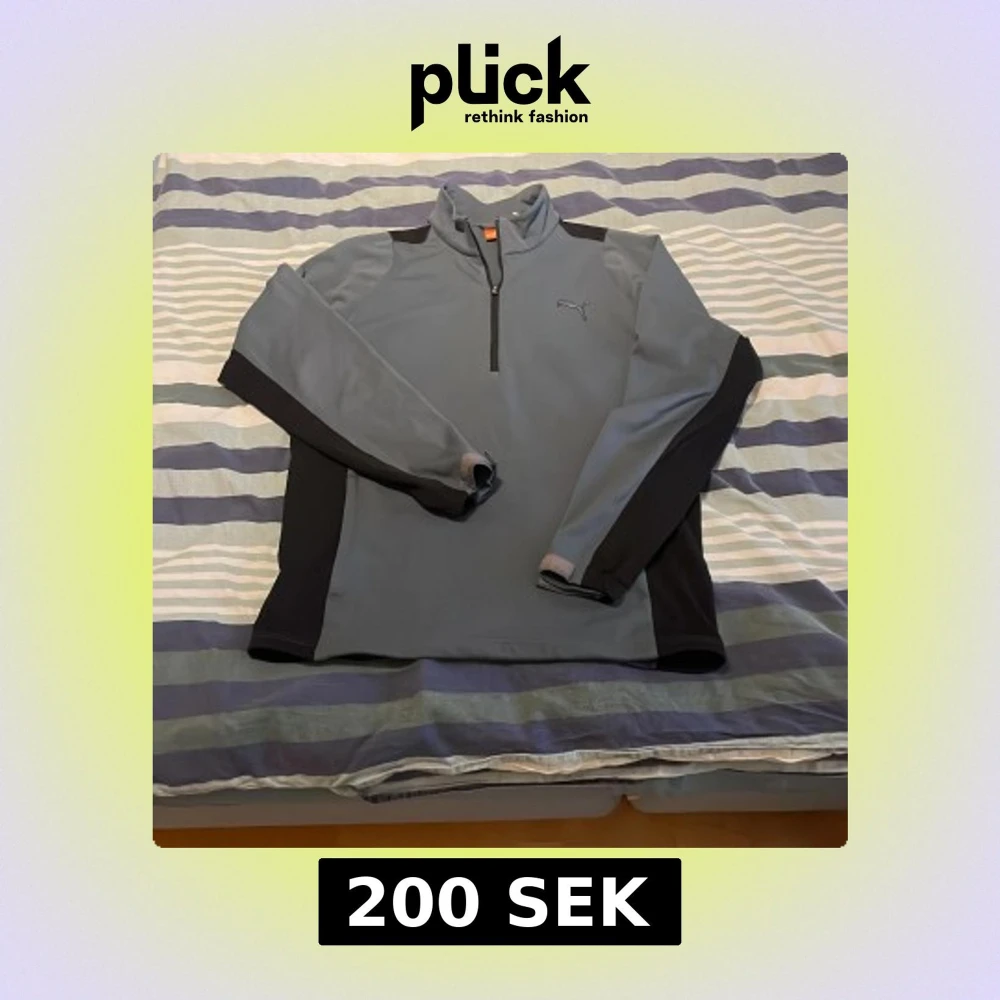 Snygg grå tröja från Puma med halv dragkedja och svarta detaljer på ärmarna. Perfekt för träning eller en avslappnad dag. Tröjan har en diskret logga på bröstet och en bekväm passform. Vindjacka från puma. Pris går alltid att förhandlas!