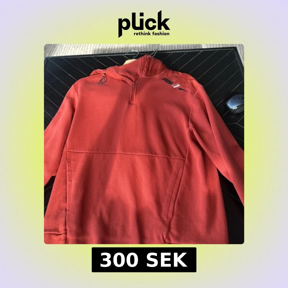 Snygg röd hoodie från Puma med half zip och huva med snörning. Tröjan har lång ärm, praktisk ficka framtill och en cool logga på bröstet. Materialet är mjukt och känns som bomull och polyester. Perfekt för chill dagar eller när du vill ha en sportig look.
