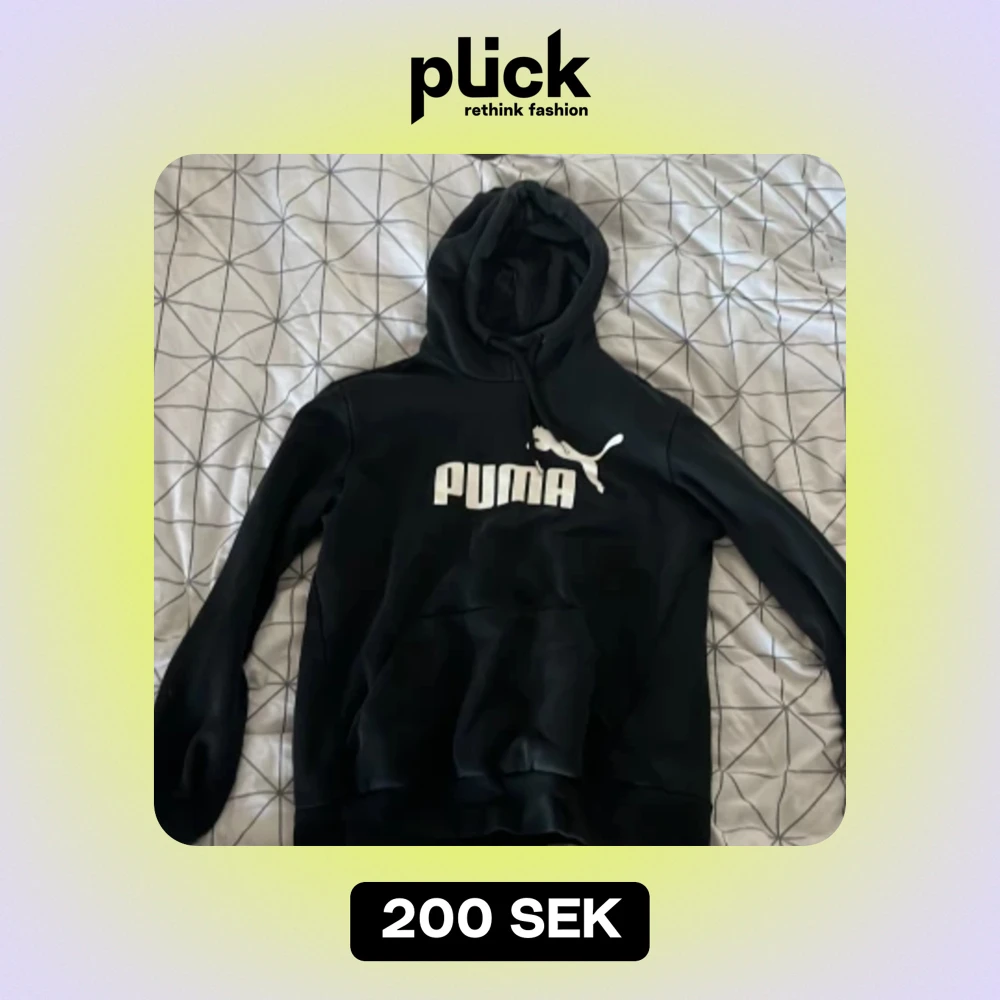 Säljer en svart hoodie från Puma i storlek M. Den har en klassisk design med Puma-loggan i vitt på framsidan. Hoodien har en stor ficka framtill och en bekväm huva med dragsko. Perfekt för en avslappnad stil eller träning.