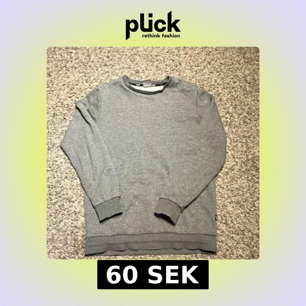 Grå sweatshirt från Puma i klassisk modell. Tröjan har rund halsringning, ribbade muddar vid ärmslut och nederkant samt lång ärm. Riktigt skön och chill tröja men ett litet märkte på ärmen som inte syns vid användning.