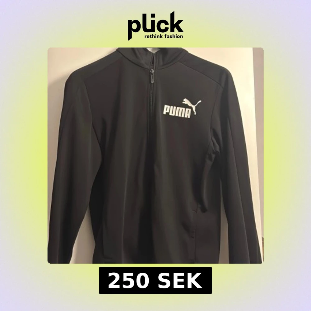 Snygg svart träningsjacka från Puma med dragkedja och logga på bröstet. Perfekt för träning eller som en sportig vardagslook. Jackan har långa ärmar och en hög krage för extra komfort.