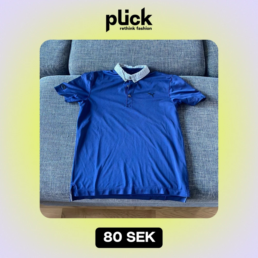 Säljer en snygg blå pikétröja från Puma med en stilren krage i rutigt mönster. Tröjan har korta ärmar och tre knappar framtill. Perfekt för både vardag och lite mer uppklädda tillfällen. Passar bra till jeans eller chinos! Pris går alltid att förhandlas!