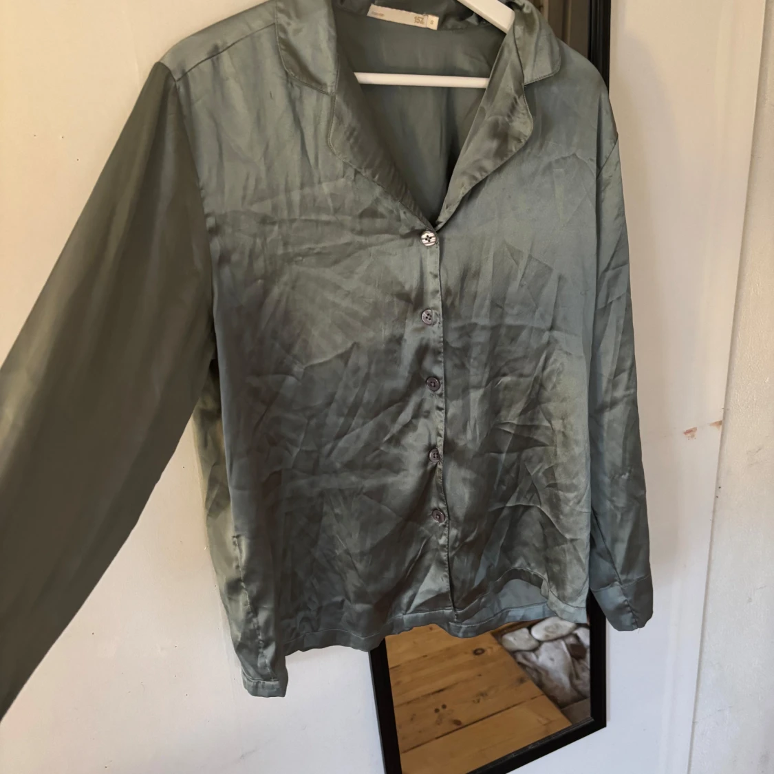 Säljer nu mitt pyjamas sätt från lager då det är för stort. Det har inga fläckar eller liknande och är i fint skick!💕färgen är typ mint grön/kall blå. Matrialet är i satin