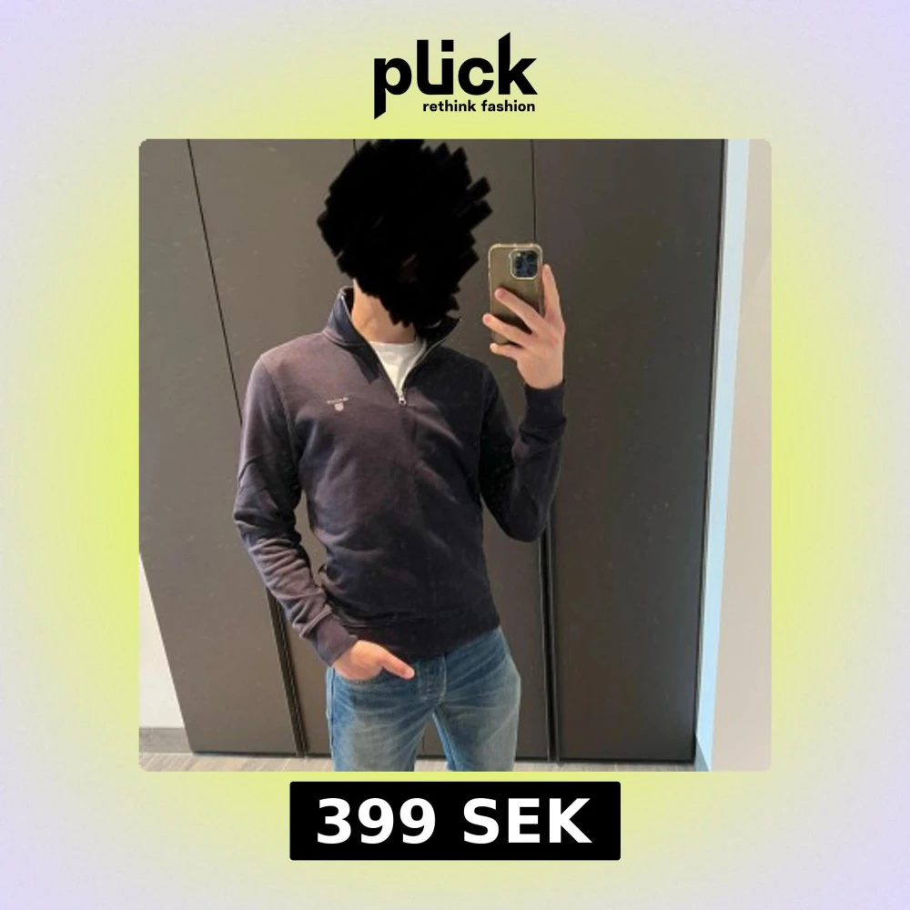 Säljer en stilren mörkblå tröja från Gant med halv dragkedja och broderad logga på bröstet. Tröjan har långa ärmar och ribbade muddar vid ärmslut och nederkant. Perfekt för en avslappnad look.