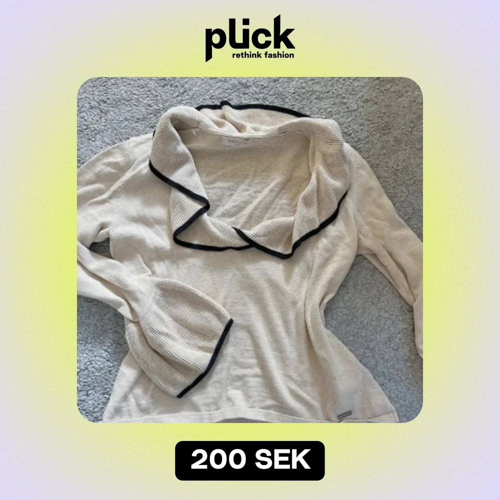 Detta är en beige tröja med så snygg krage och puffar vid ärmarna. Den är från Rabalder och köpt för ungefär 900kr. Det är inte din vanliga tröja utan en unik.