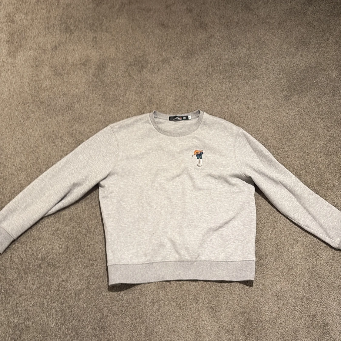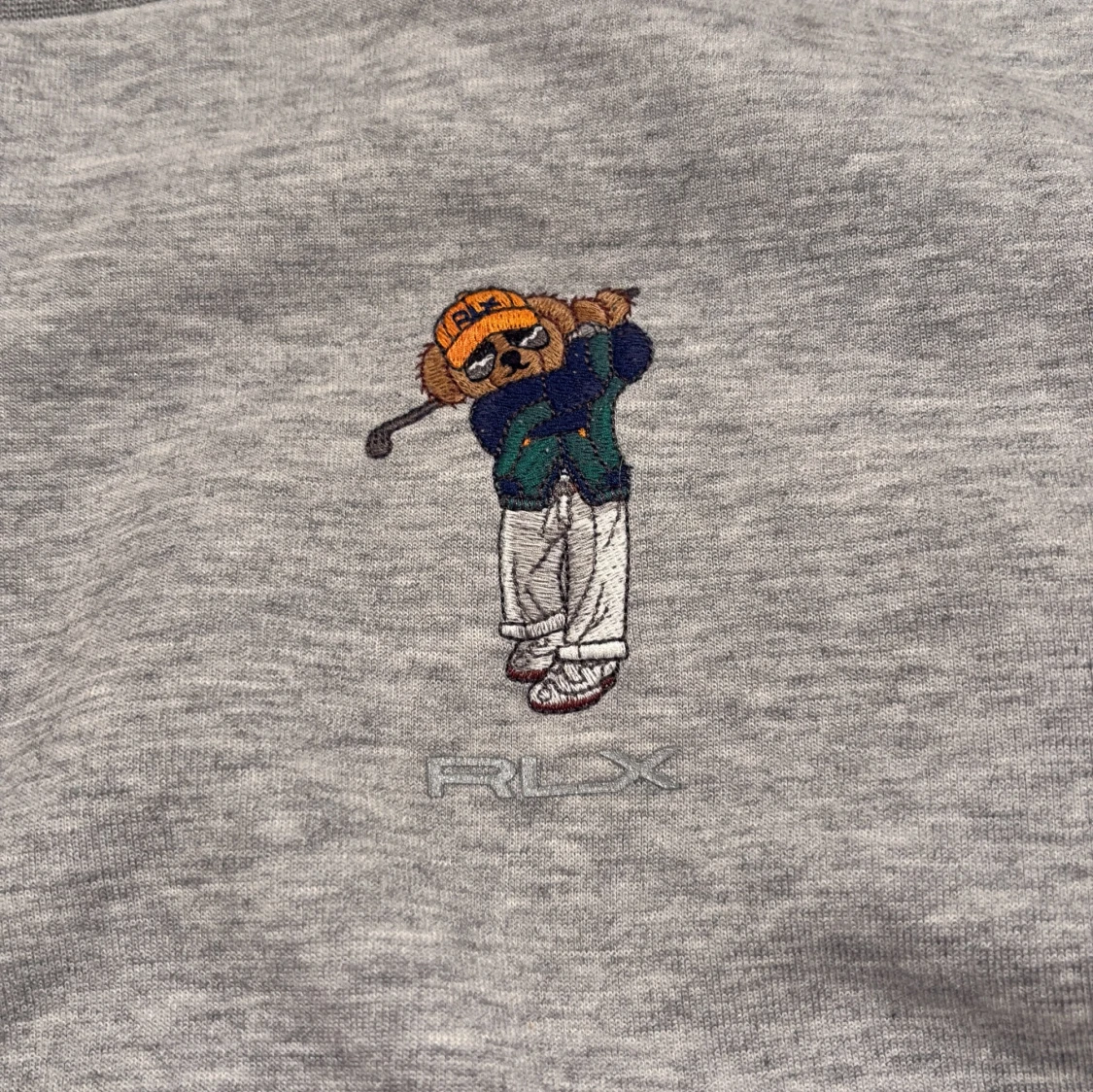 Säljer en stilren och väldigt unik grå sweatshirt från Ralph Lauren med en broderad björn som spelar golf på bröstet. Tröjan är från Ralph Laurens golfkollektion och är i väldigt bra skick. Tröjan är strl L.
