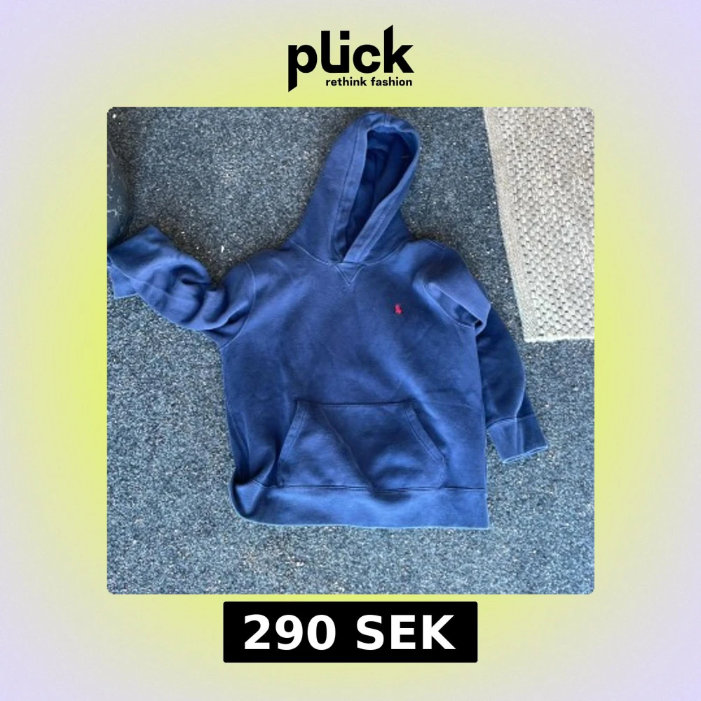 Säljer en mörkblå hoodie från Polo Ralph Lauren med klassisk röd broderad logga på bröstet. Tröjan har huva, känguruficka och långa ärmar. Perfekt för dig som gillar en enkel och stilren look. Slitningar på höger arm