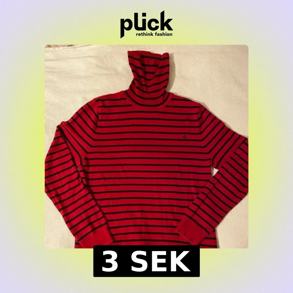 Säljer en röd och svart randig polotröja från Ralph Lauren. Superfint skick oanvänd.