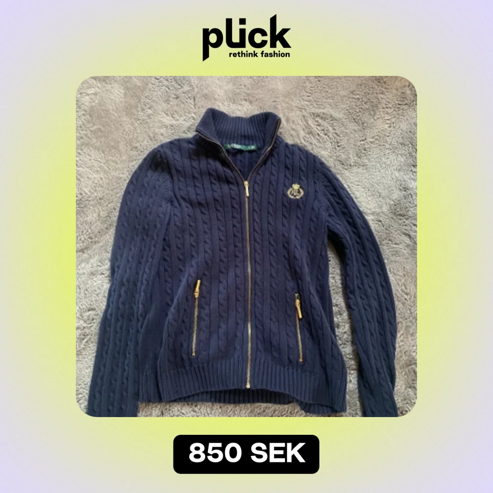 Säljer en otroligt fin Ralph lauren cabble nit full zip i mörkblå färg med guldfärgade dragkedjor🤩 Kontakta ifall ni har frågor🤝