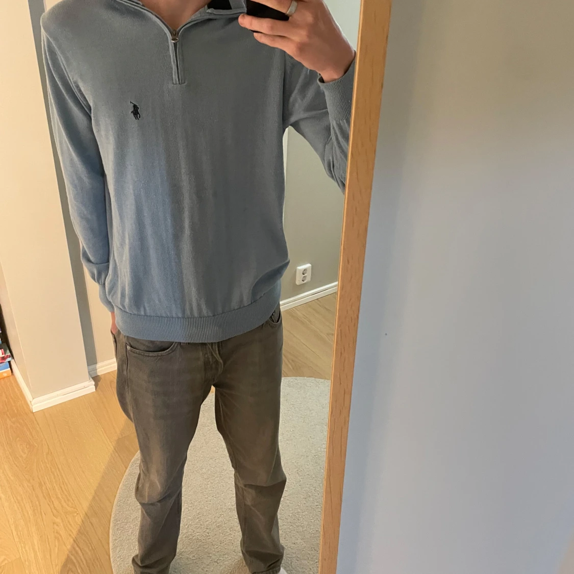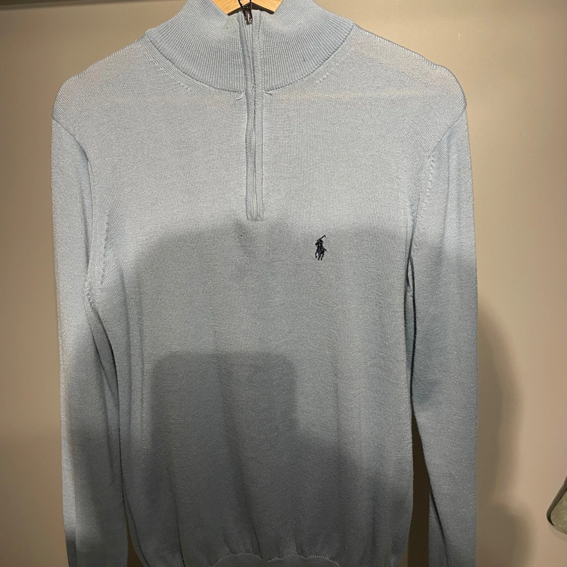 äljer en snygg ljusblå Ralph Lauren half zip som är i bra skick, 8/10 skick! Nypris på denna är ungefär 2000kr och jag säljer den nu för endast 499kr! Kontakta vid minsta intresse, skickar tröjan samma dag!