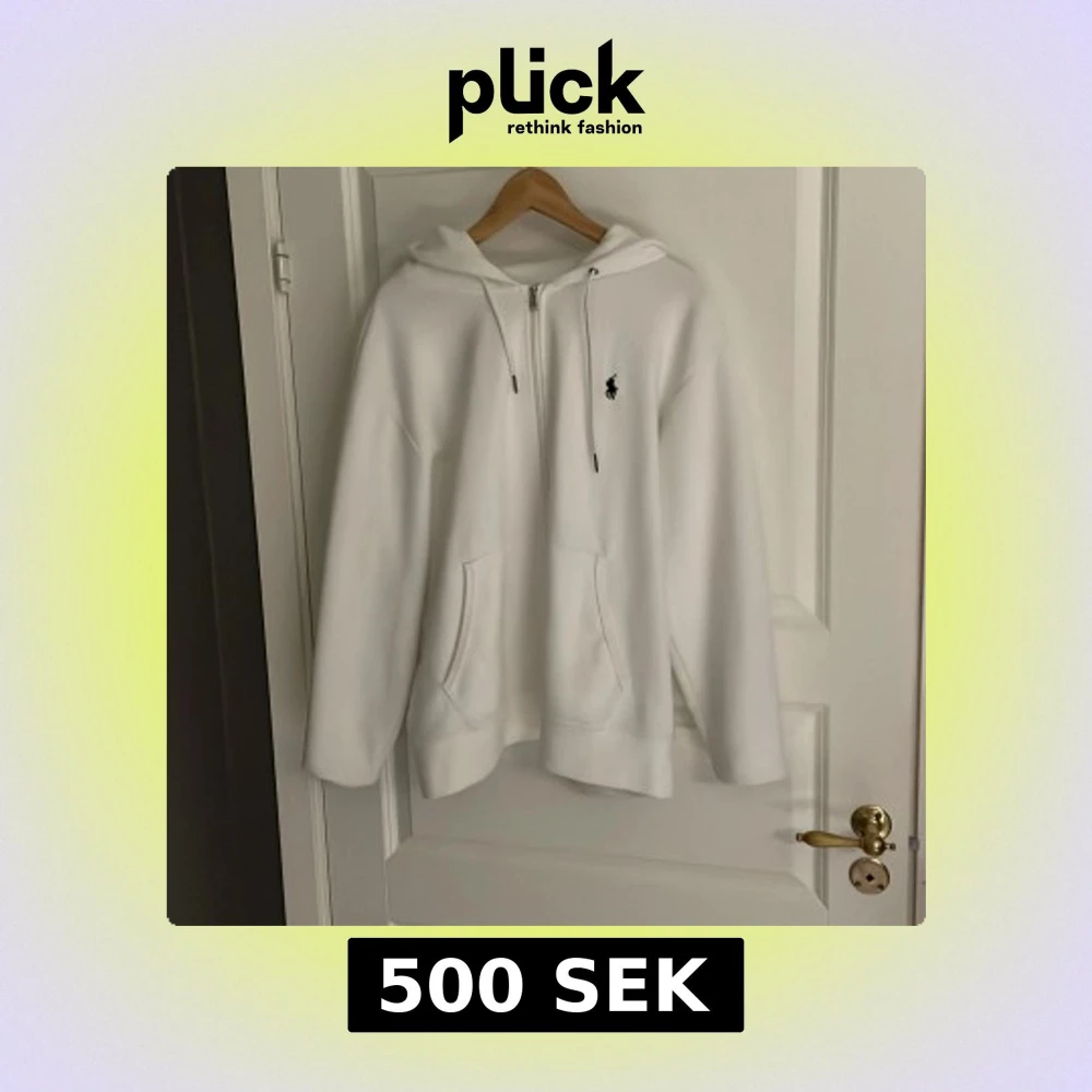Säljer en klassisk vit hoodie från Polo Ralph Lauren med dragkedja och huva. Tröjan har två fickor framtill och en liten broderad logga på bröstet. Perfekt för en stilren och avslappnad look. Står M men skulle säga att den passar mer som L! Skick 9/10 Knappt andvänd då den är för stor, Bara höra av sig vid minsta lilla fundering!🔥