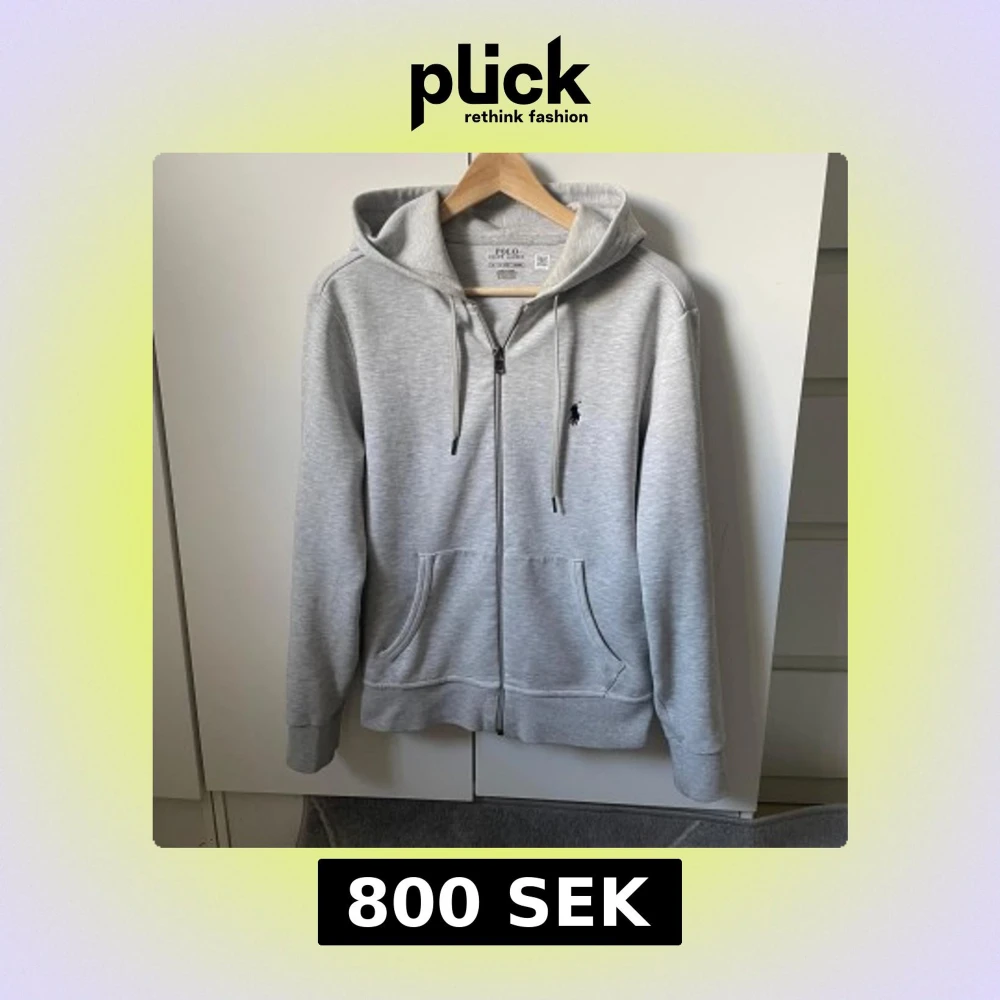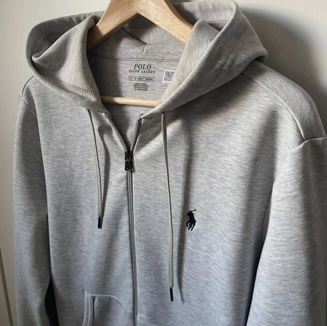 Säljer en stilren ljusgrå hoodie från Polo Ralph Lauren i storlek XS. Tröjan har dragkedja, huva med snörning och två fickor framtill. Klassisk broderad logga på bröstet. Perfekt för en avslappnad look.