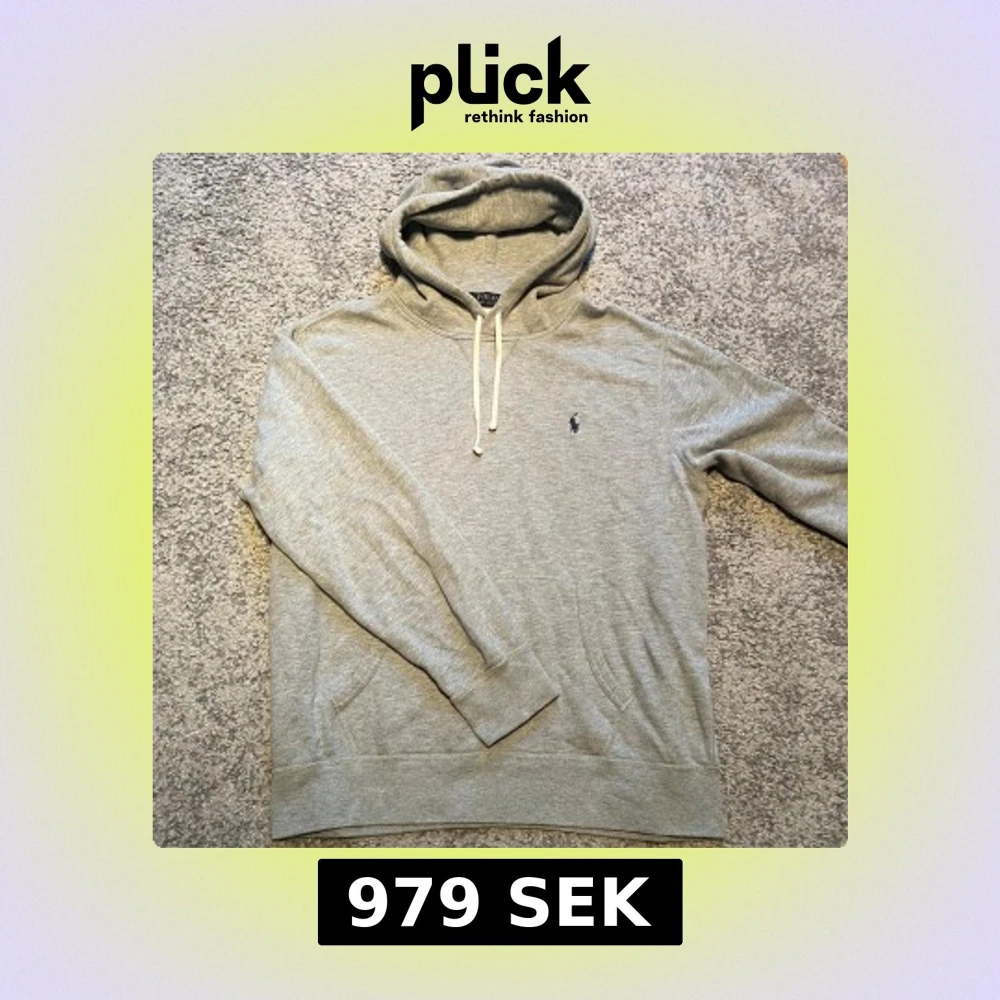 Säljer en klassisk grå hoodie från Polo Ralph Lauren med dragsko i huvan och broderad logga på bröstet. Tröjan har känguruficka och är perfekt för en avslappnad stil. Supermjuk och skön att bära.