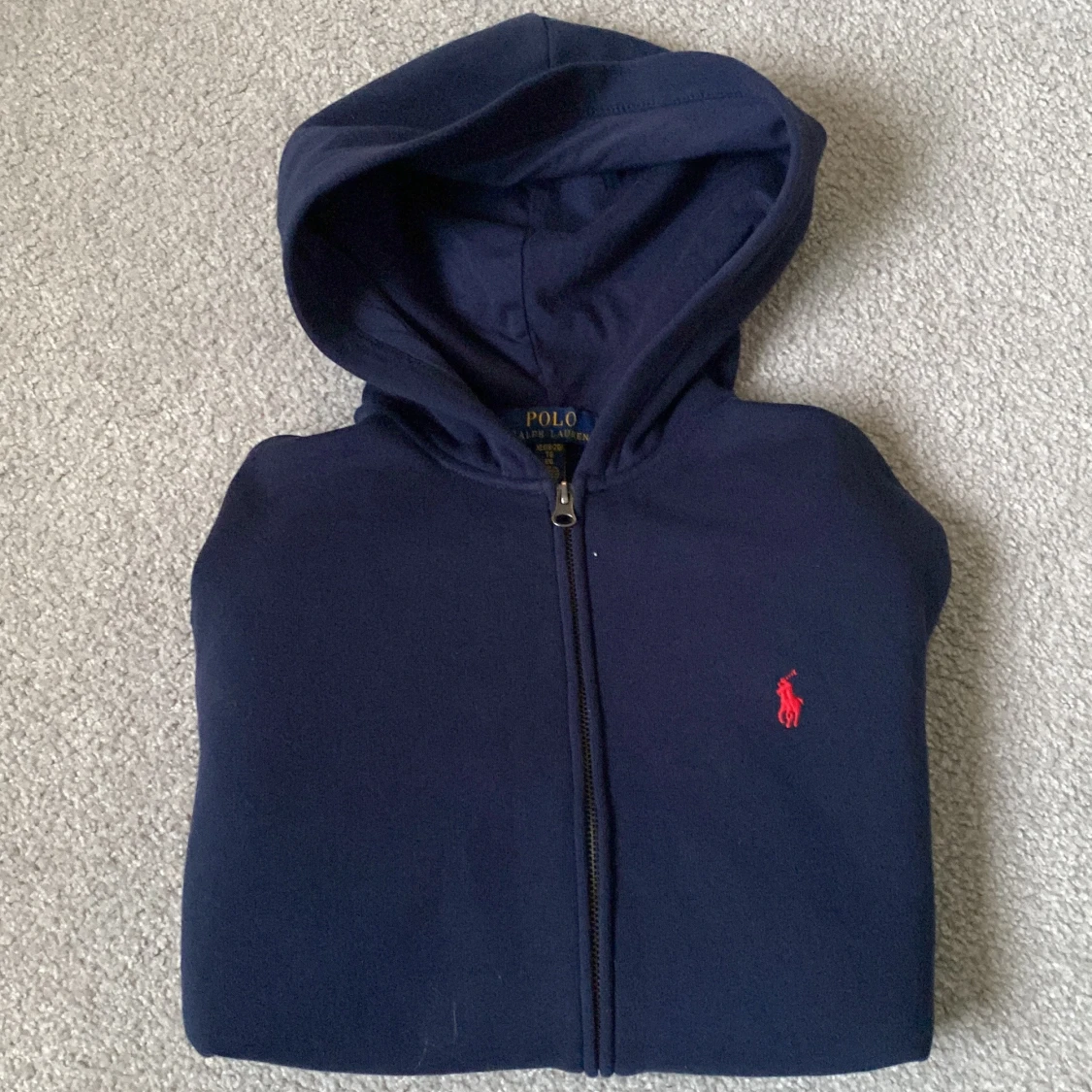 Snygg marinblå hoodie från Polo Ralph Lauren med dragkedja och huva. Den är i bra skick utan stora tecken på användning, storleken är barn XL och passar som vuxen S/XS. Skriv gärna vid minsta lilla fråga och såklart kan priset diskuteras!